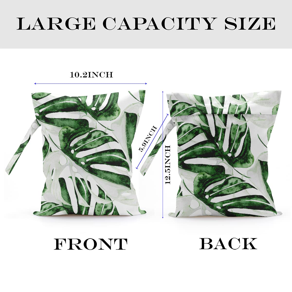MULTI-FUNCTIONAL – Our wet bags have lots of uses. It is suit for carrying diapers, dirty gym clothes, wet swimsuits and sanitary napkin, menstrual pad; not just for wet stuff - these bags make excellent organizers for toys, cosmetics, accessories, toiletries, electronics, travel and more. With a snap handle, snap your bag wherever you need it - , changing,tote bag, table or suitcase.