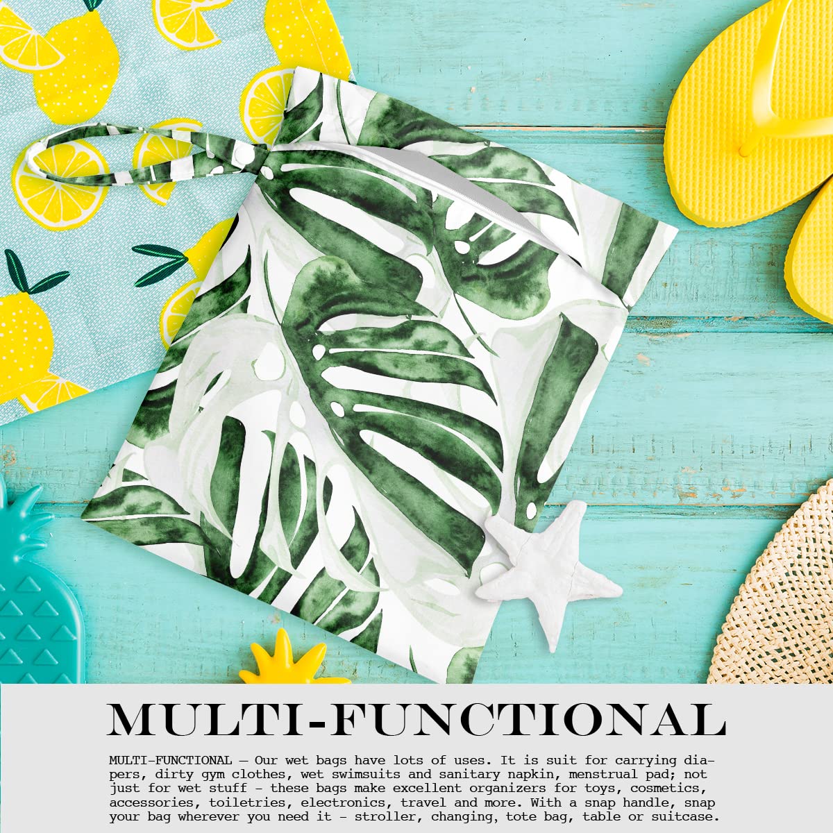 MUST-HAVE - This bag is not only a wet bag, but also a makeup bag, sanitary napkin bag, wash bag, coin purse, snack bag, travel bag, storage bag, cosmetic bag, handbag, cloth diaper, smell proof backpacks, swimsuit bag, beach bag.