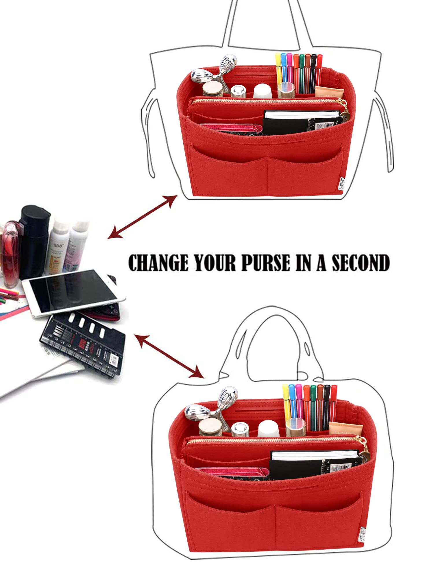 BETTER PROTECT:Felt Purse Organizer with High quality and New Materials are made of Sturdy ,Soft and pliable, Lightweight Felt fabric makes your purse a better protect.The Zipper of the organizer are made of Metal, Durable, Fashion and smoother sturdy and keeps your bag shape and shipshape.