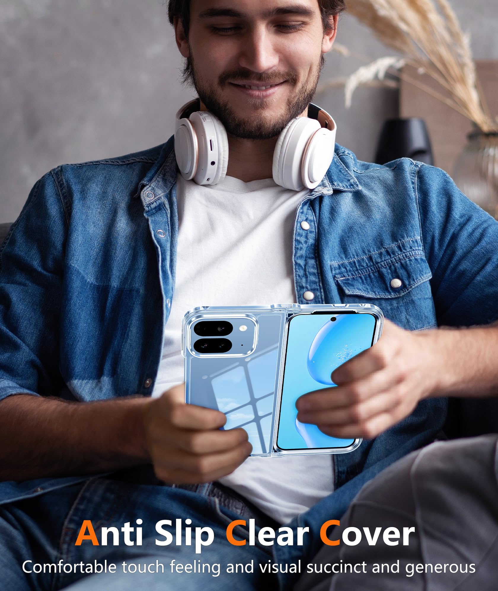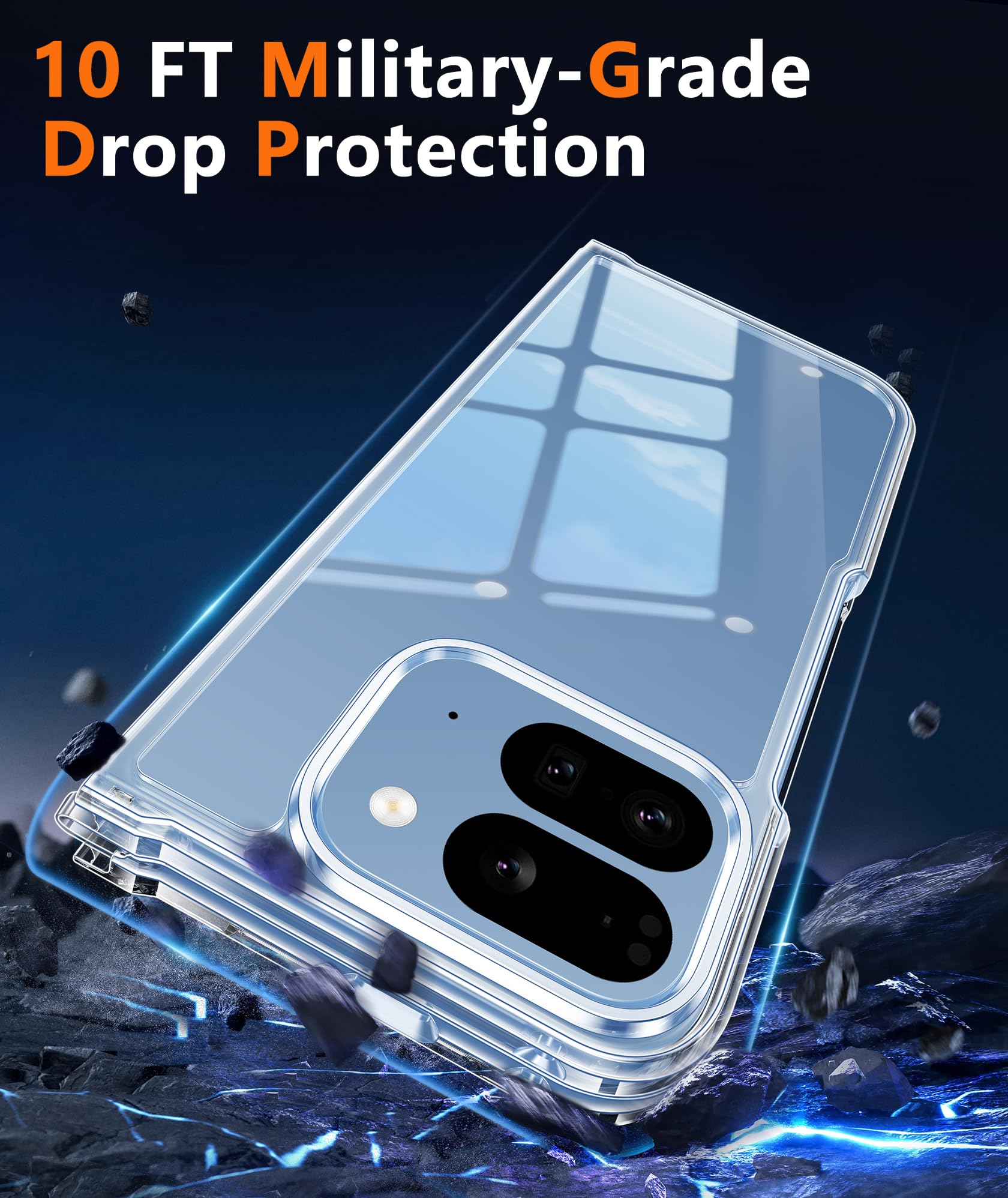10FT Military Grade Protection: Passed military drop tested up to 10 FT. This pixel 10 pro fold clear case backplane is made of rigid polycarbonate and flexible shockproof TPU bumpers around the edge and features 4 built-in corner Airbags to absorb impact, which provides professional drop protection for your pixel 10 pro fold from drops, bumps and tumbles