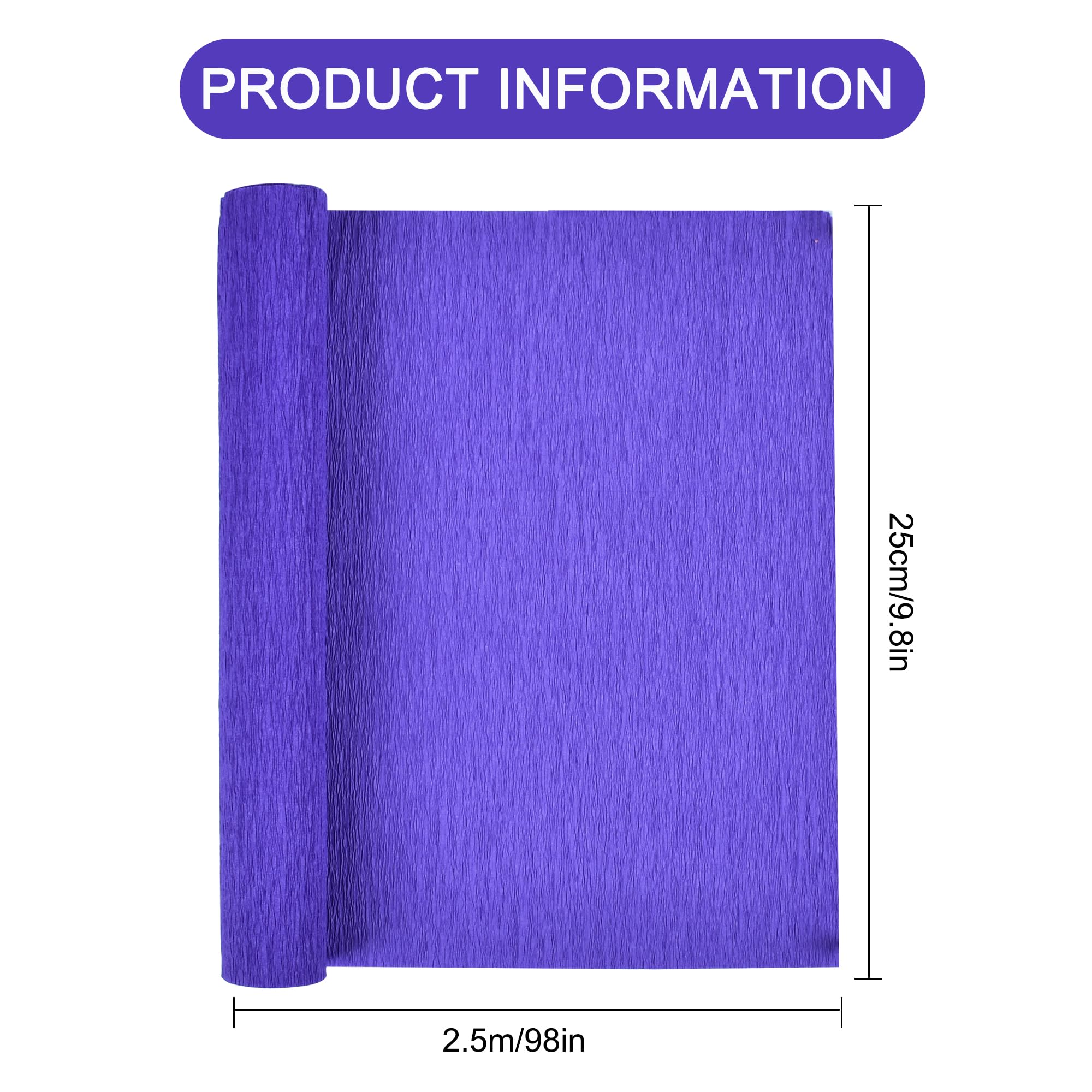【Size】A pack of 2 rolls crepe paper,each roll measuring 9.8 inches in width and 8 feet in length.