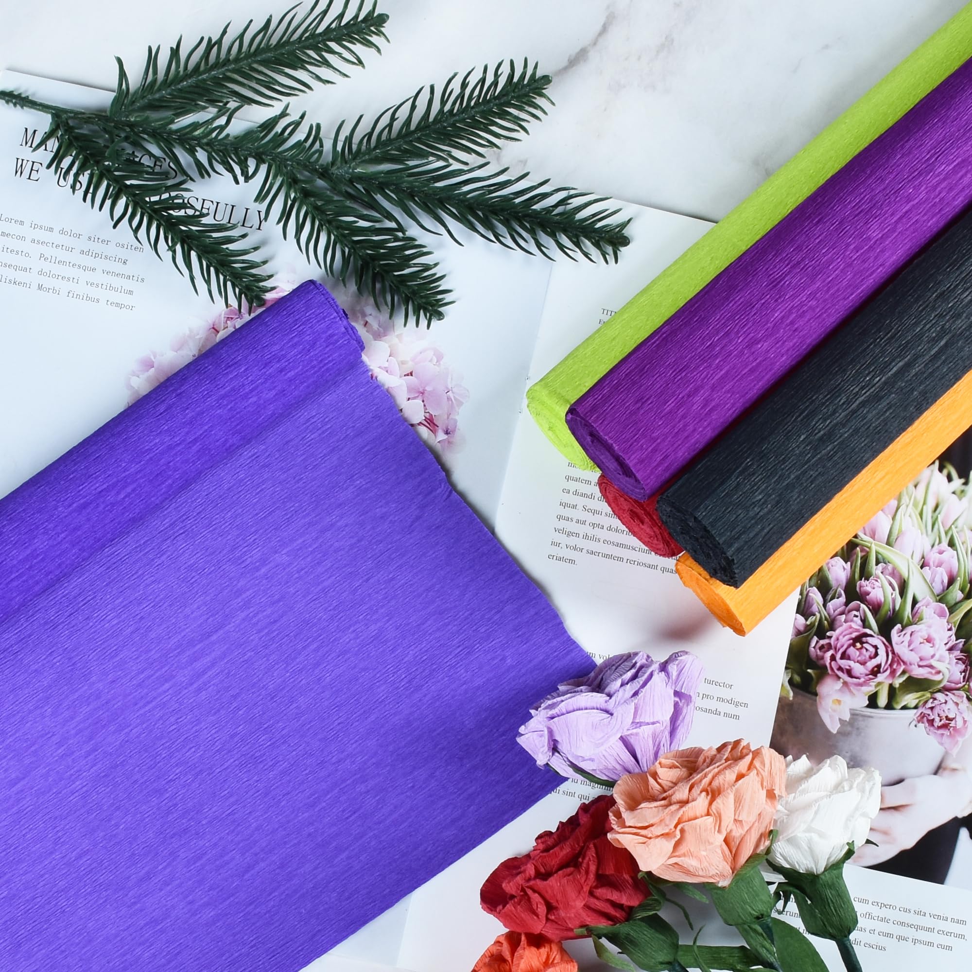 【Quality】The crepe paper is made of high-quality paper, which is not easy to tear or fade, and is soft enough, so you can also cut them into the size or shape you want.