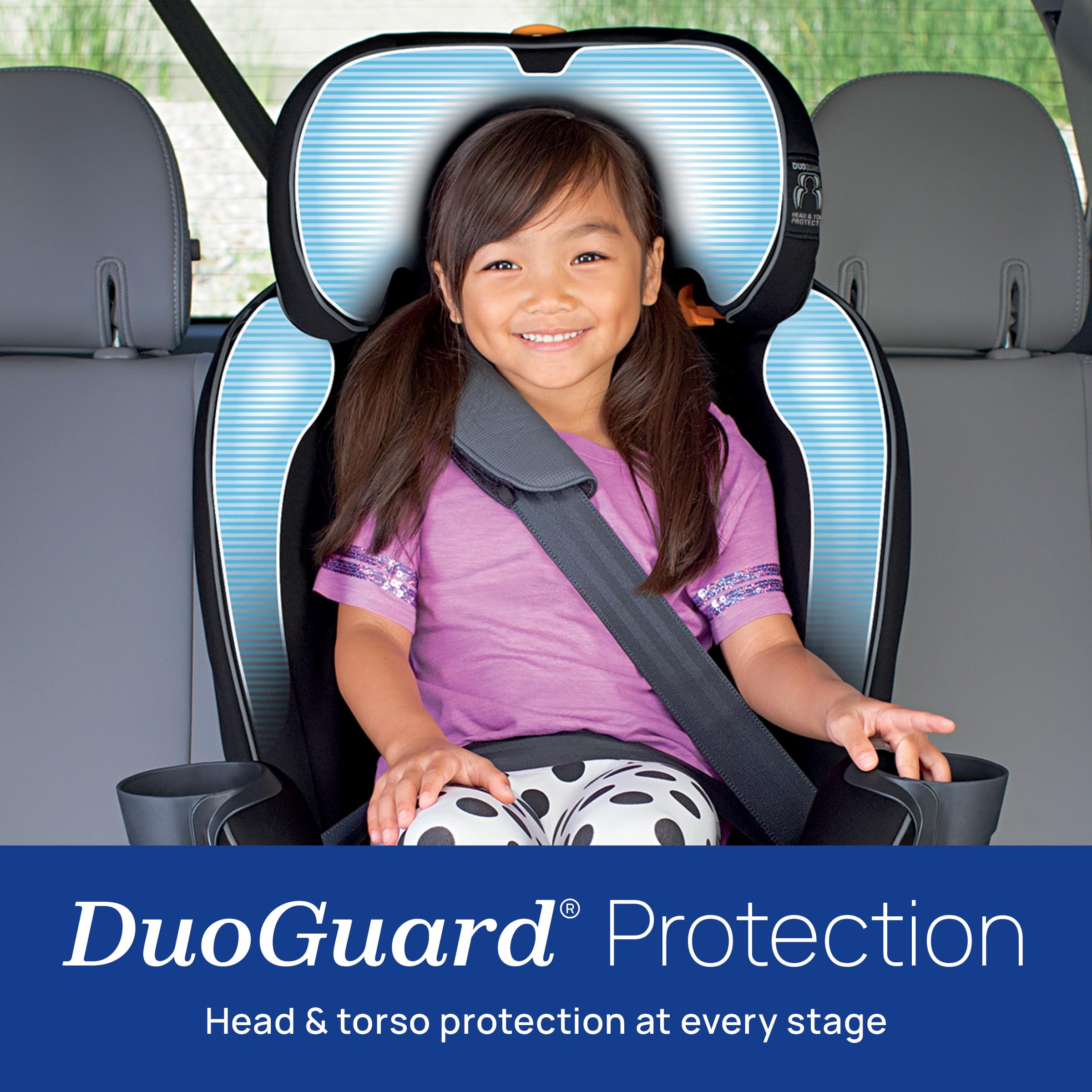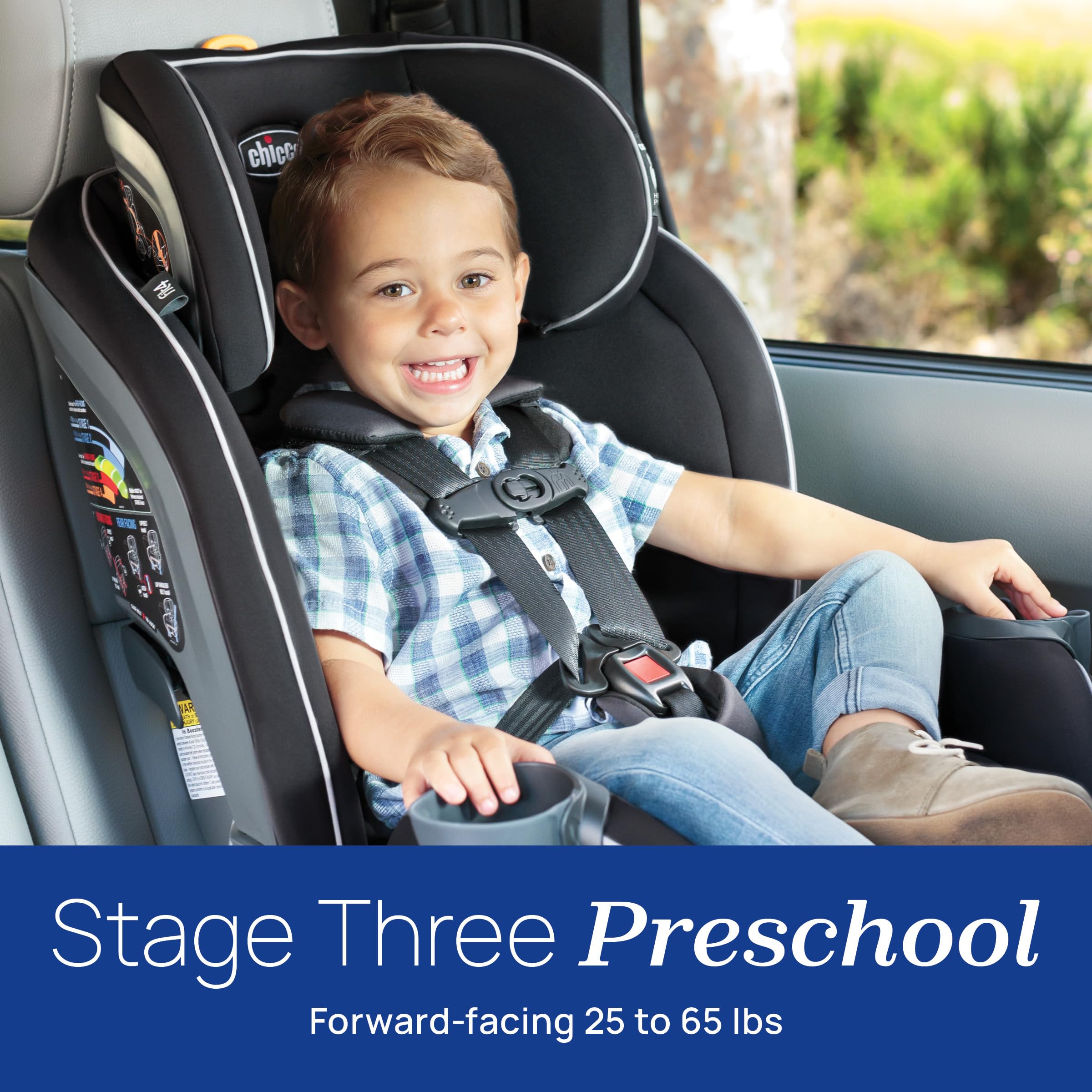 One Car Seat – 4 Stages to Grow The Chicco Fit4 4-In-1 Convertible Car Seat, designed to deliver premier child fit and comfort at each unique stage, makes it easy to correctly secure your child in the infant to toddler car seat or big kid booster. Trusted, easy-to-use installation and safety features unique to Chicco combine with an innovative 4-Stage FitKit System, for ultimate convenience and peace of mind as your baby grows. The 4-Stage FitKit System provides optimal fit and comfort through multi-staged construction and easy-to-remove layers, providing more room to grow through each unique stage. Combined with a 10-position easy-adjust headrest and 9 recline positions, your child will be riding in comfort as they grow, correctly secured in each stage. Easiest All-in-One Car Seat to Install Correctly Chicco-exclusive installation features including ReclineSure leveling system, RideRight bubble levels, force-multiplying SuperCinch LATCH tightener and LockSure belt-tightening system combine to make Fit4 the easiest all-in-one car seat to install correctly. Slim design and space-saving CupFolders make Fit4 4-in-1 car seat easy to fit and secure inside your vehicle. Protection at Every Stage DuoGuard provides two layers of protection with a steel-reinforced frame and EPS energy-absorbing foam that surround the head and torso throughout every stage. A 10-position headrest adjusts in height simultaneously with the 5-point harness to accommodate maximum growth, for best-in-class protection from birth through booster.