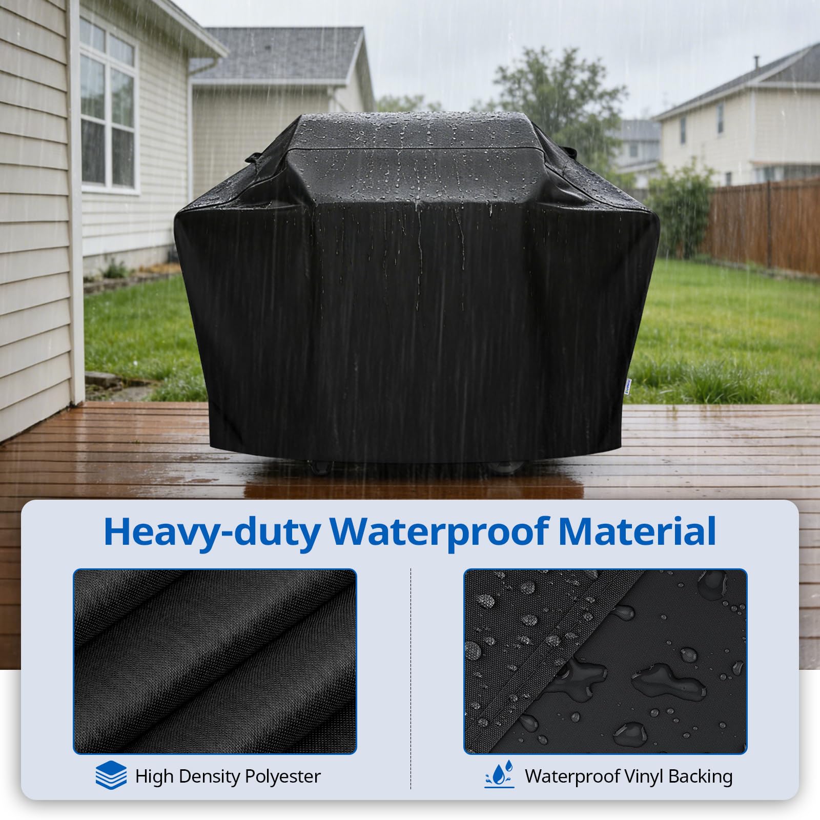 FadeStop and Waterproof - Made of high performance UV resistant and FadeStop Polyester fabric with waterproof vinyl lining, resists to fading, tearing and cold cracking, so your grill will be protected from sun damage, rain, snow, dust and debris all year round.
