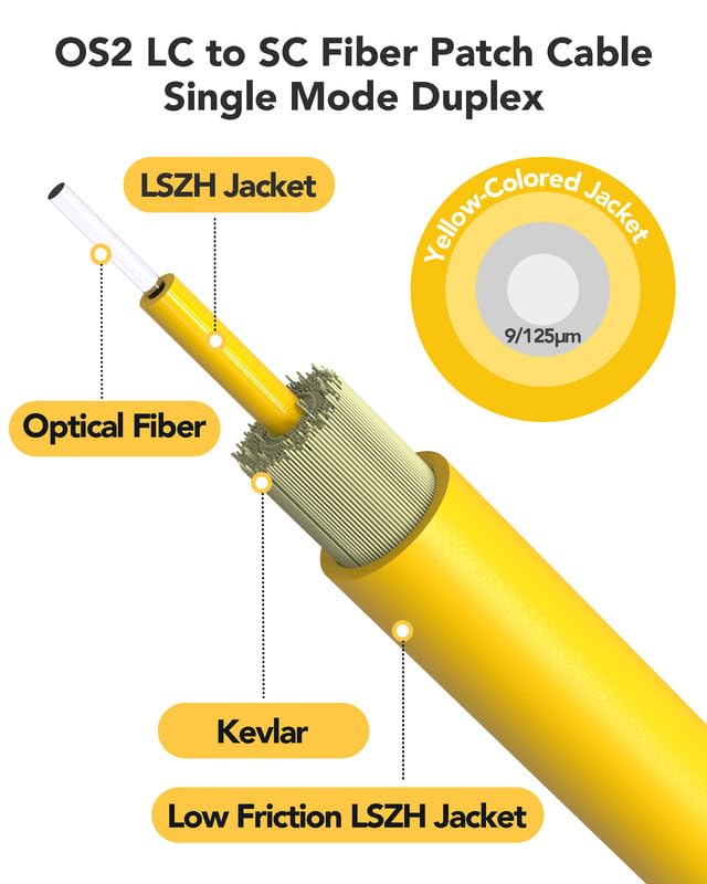 OS2 Singlemode SC to LC Quality Design: Crafted with precision, our OS2 SC to LC fiber patch cable features 9/125μm fiber core, UPC Ferrule, LSZH Jacket, OD 3.0mm and complies with TIA/EIA 568-C.3 standards. Easily connect or separate individual fiber access with the included plastic clip connectors.