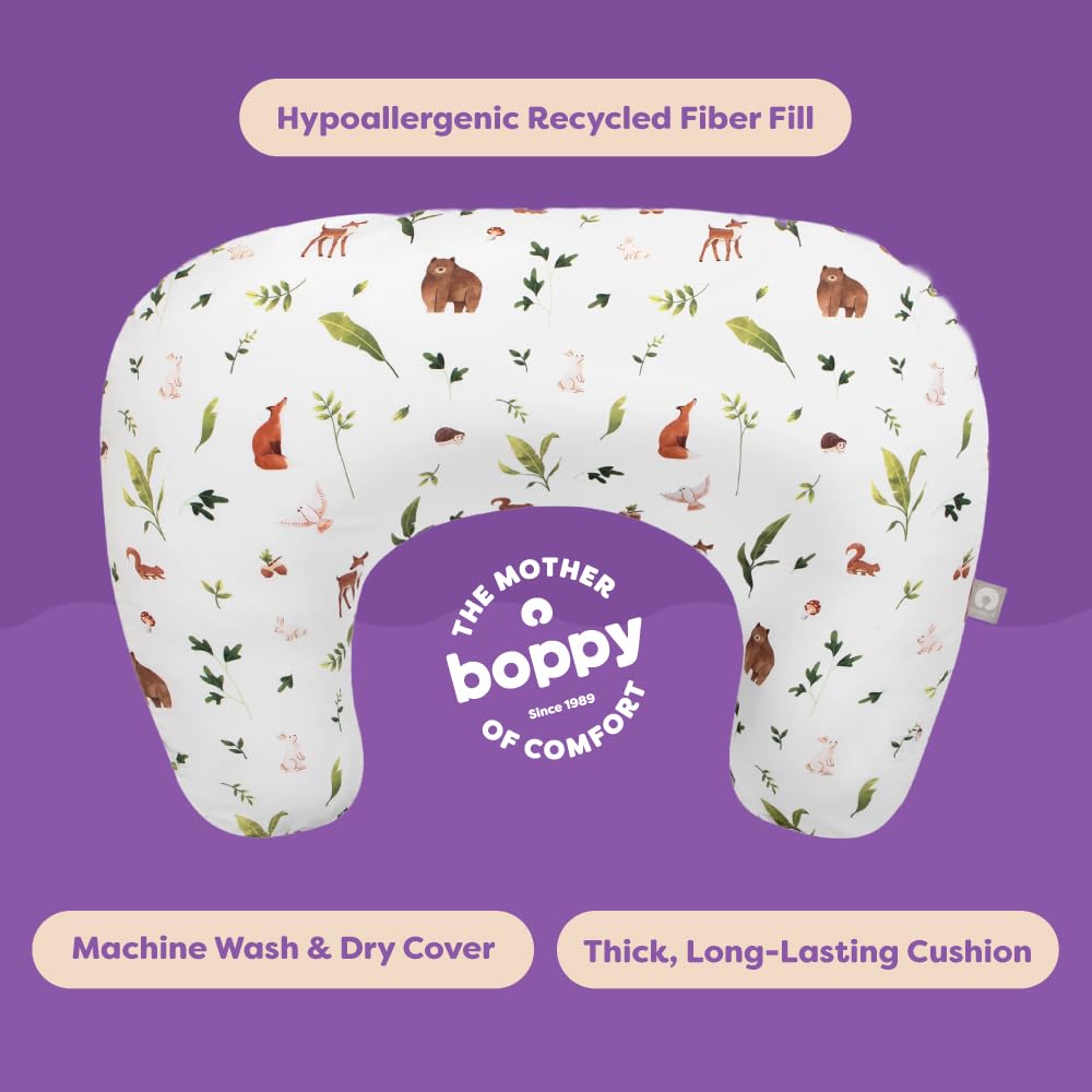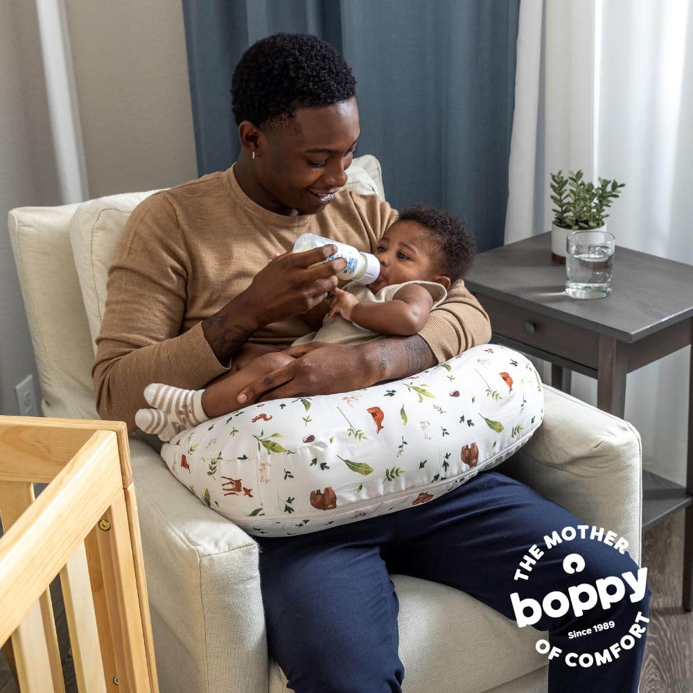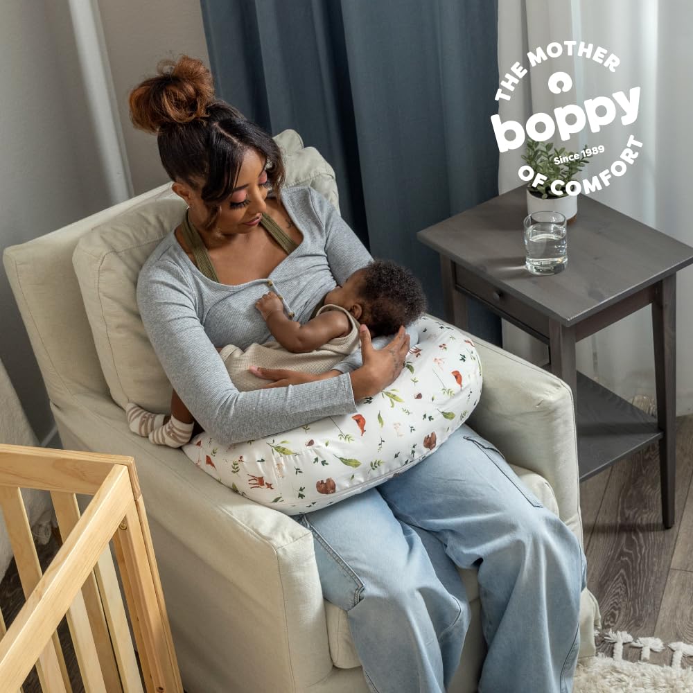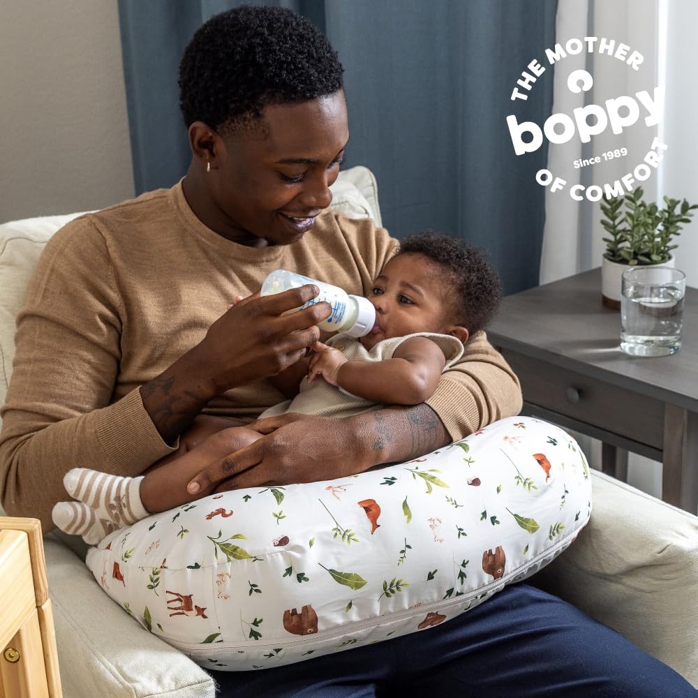 Introducing the Updated Boppy Nursing Pillow, your comfy, snuggly sidekick for feeding moments. This redesigned cutie, dreamed up by clever moms, gives your arms and back a break while keeping baby at the perfect angle for breastfeeding and bottle feeding. Did you know the average nursing mom clocks over 35 hours a week feeding? Talk about a full-time job. But fear not, our Redesigned Boppy Nursing Pillow is here to save the day (and night), just as our Original Boppy Nursing Pillow has done for 35 years. With its updated, versatile design, you can cradle, cross cradle, or football hold with ease. This pillowโs got your back (literally) with its larger, firmer shape that hugs every body type just right, keeping baby snug and positioned just right. Itโs small enough to fit in your rocking chair or glider but big enough to deliver all the support you need. No wonder itโs been a registry must-have and a favorite among moms, dads, caregivers and lactation consultants alike for over three decades. The easy-on, easy-off, beltless design has a wider opening and means you can pop it on with one handโbecause what mom or dad has two free hands? Plus, its removable cover is machine washable for those inevitable messes. Filled with hypoallergenic, recycled fiber, itโs as carefree as it is cozy. Got a laundry day? No worries. Weโve got extra covers so you can always have a fresh one ready. Just remember, this pillow is for supervised awake-time onlyโno snoozing allowed! Trust Boppy to keep you and your baby comfy, happy, and oh-so-confident. Letโs make feeding time the best time.