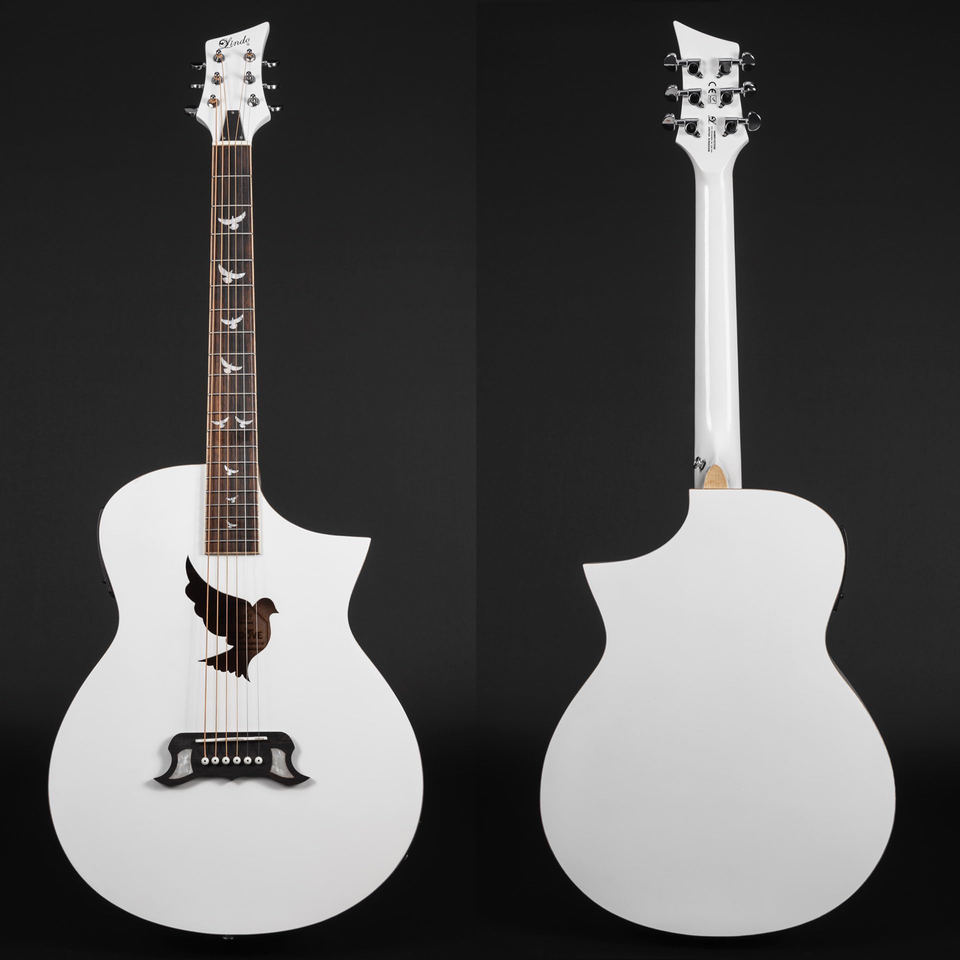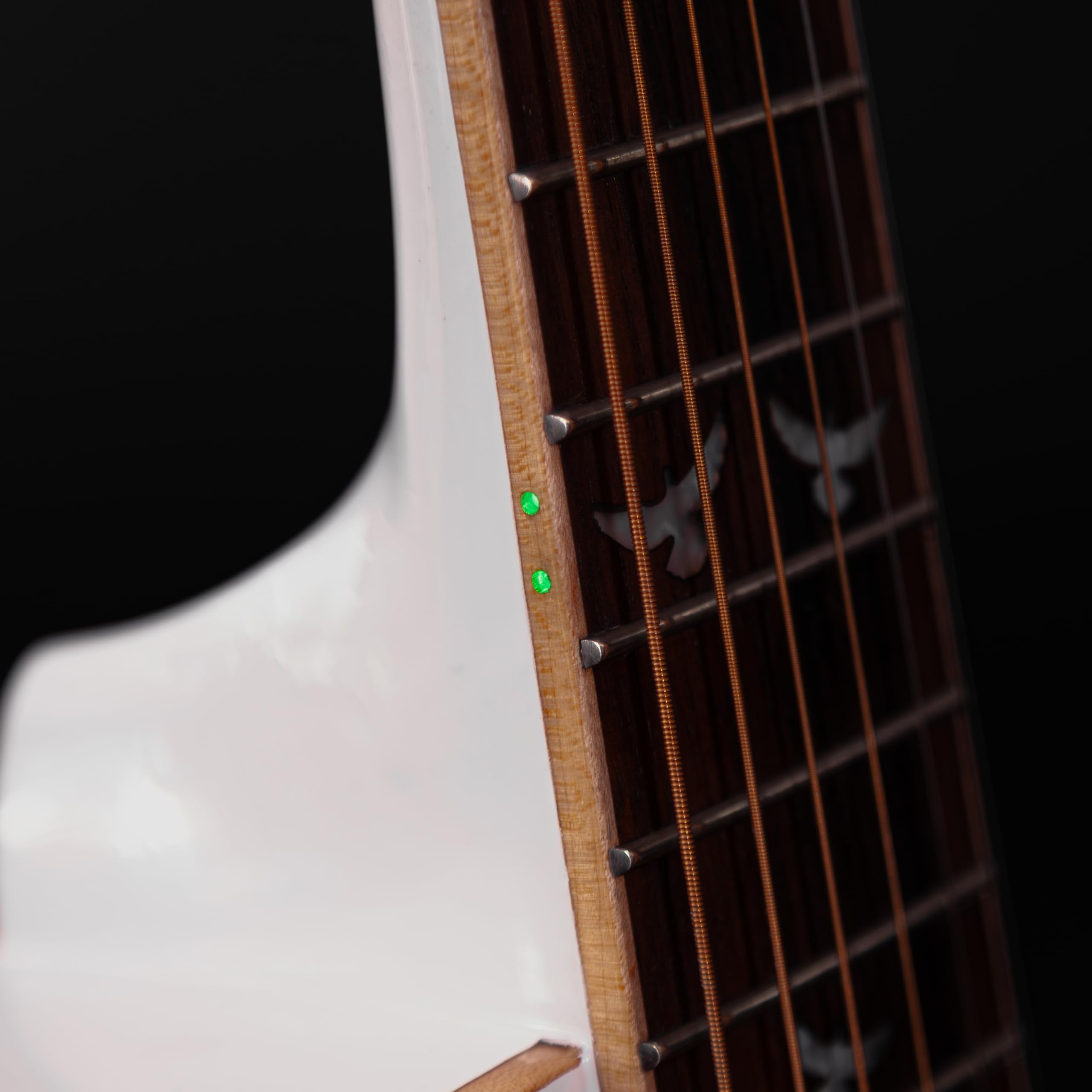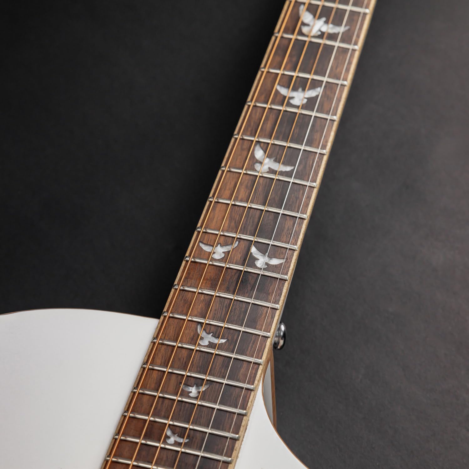 Unique full-size electro acoustic guitar - designed in Bristol, UK, by Lindo Guitars | Luminlay side dots | Mother-of-Pearl "Dove in Flight" Fretboard Inlays