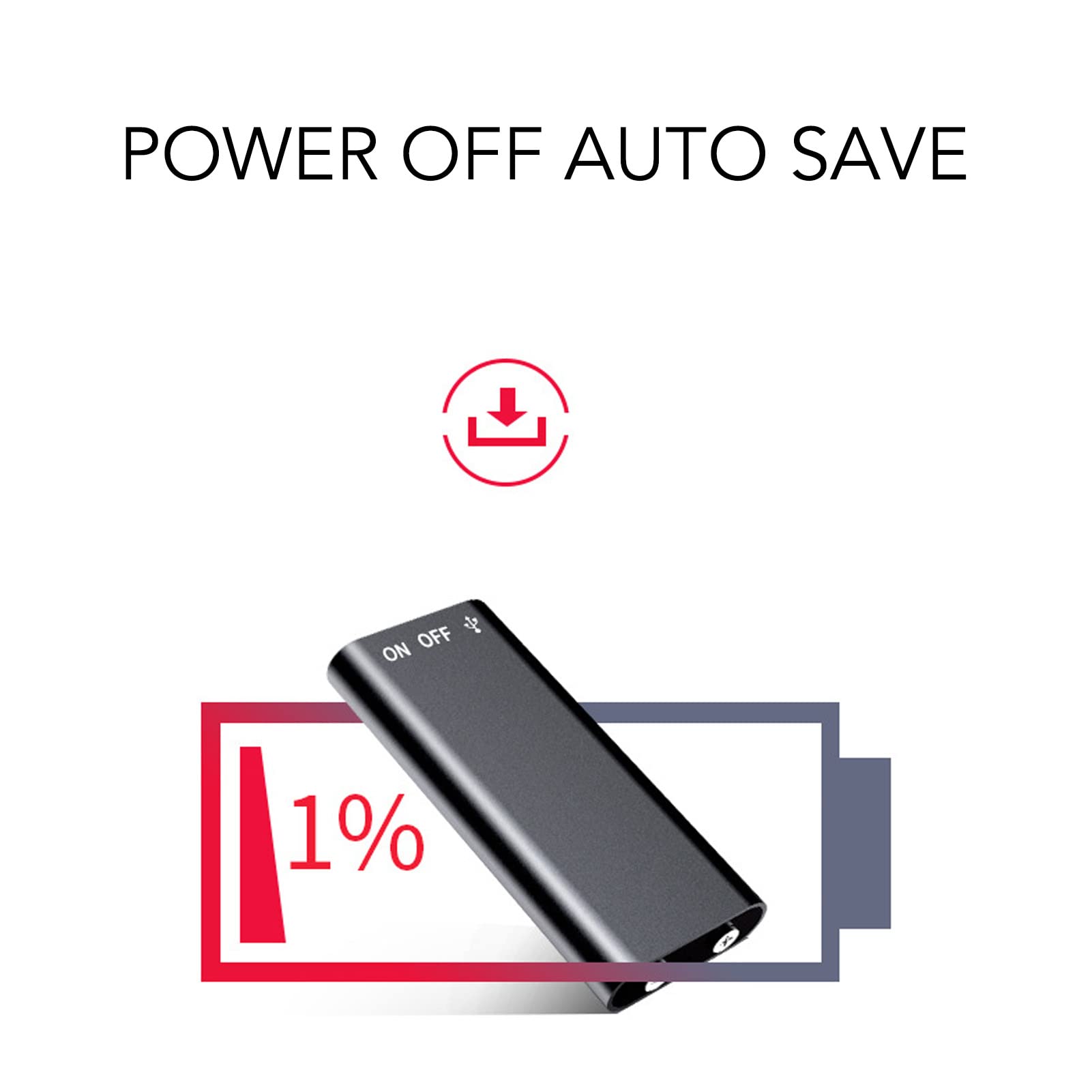 [Long Battery Life] Mini voice recorder built in 90mAh rechargeable battery, use USB cable to , 8 hours of continuous recording, standby 30 days.