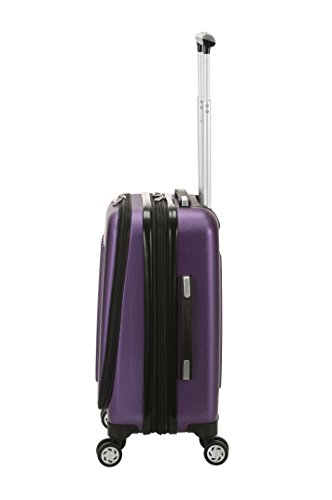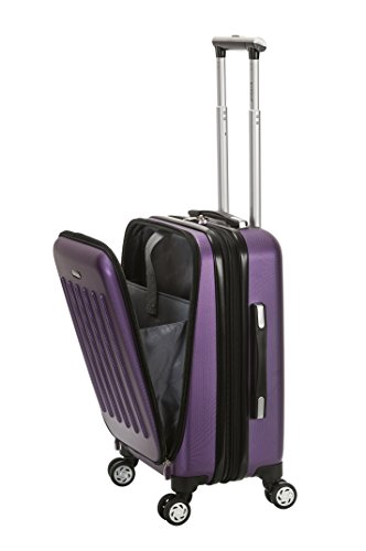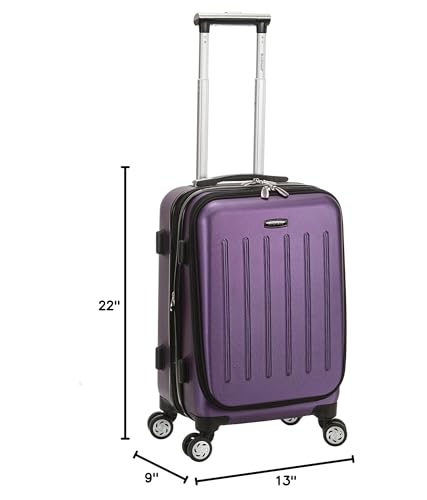 Description This carry on is made of ABS. This material is extremely lightweight, durable, and protects the contents of your luggage. Front zippered compartment allows for quick-access to items. Fully padded laptop pocket, fits up to 15" laptop. Silent dual casters, 4 spinner wheels rotate 360 degrees for easy maneuverability. This luggage allows you to pack more while avoiding the excess weight surcharges imposed by most airlines. Expandable. One touch Aluminum handle. 5 year . 22"X13"x9" (with wheels) weighs 7 lbs.