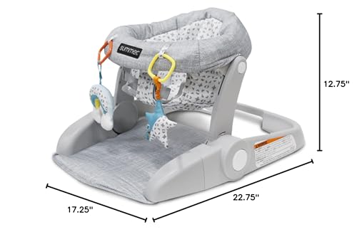 The Bright Starts Learn-to-Sit 2-Position Seat provides your baby with a little extra support during those months where they can’t wait to explore the world but need a little help doing so. This sturdy baby activity seat offers two upright positions for your little one so that they can comfortably sit up unassisted, allowing parents and caregivers to entertain baby hands-free! Featuring an easy-to-care for removable fabric seat and two soft toys, this baby seat is the perfect item for home or on the go (and folds up completely flat for easy storage!).