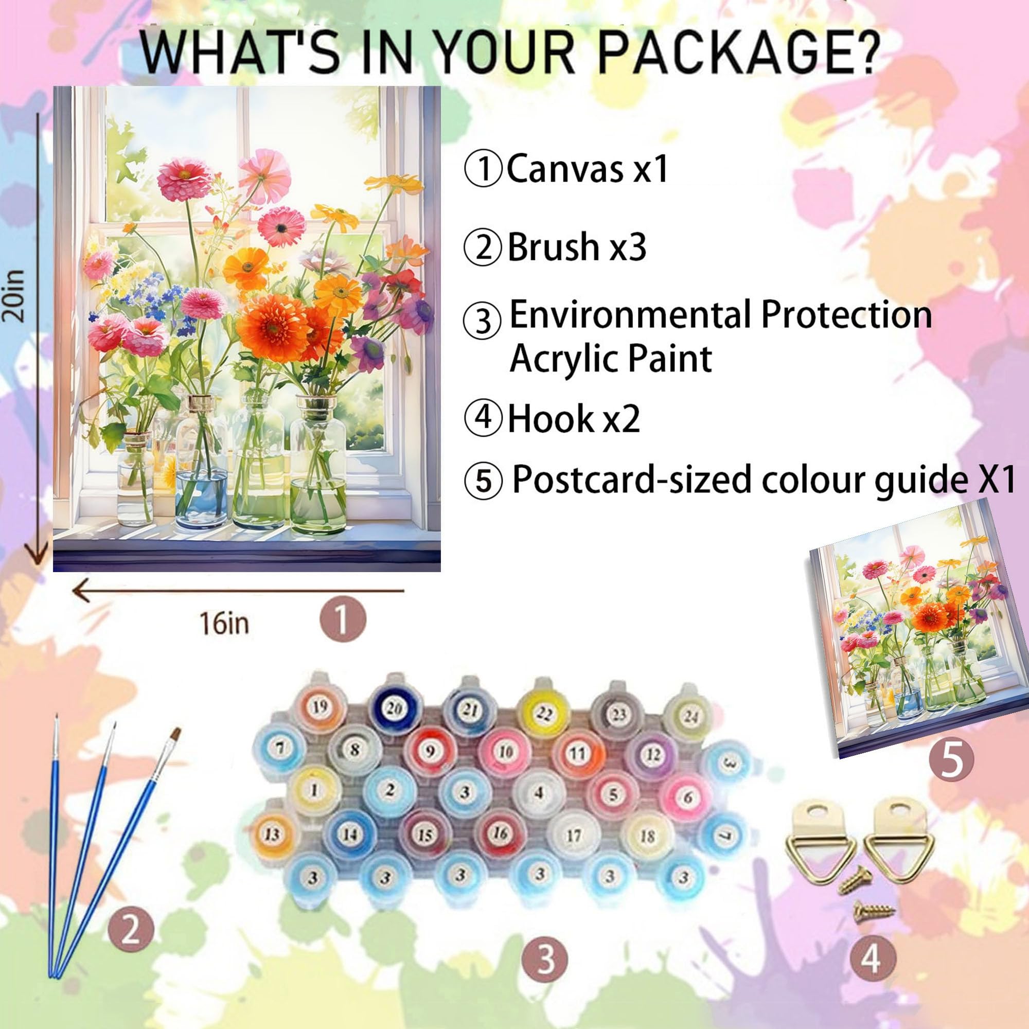 Paint by Numbers Kit for Adults:Adult paint by numbers included 1x textured canvas (no frame),3x high quality brushes,1x set of acrylic paint,1x numbered reference canvas and 2x metal hooks.All tools are prepared,you can paint directly