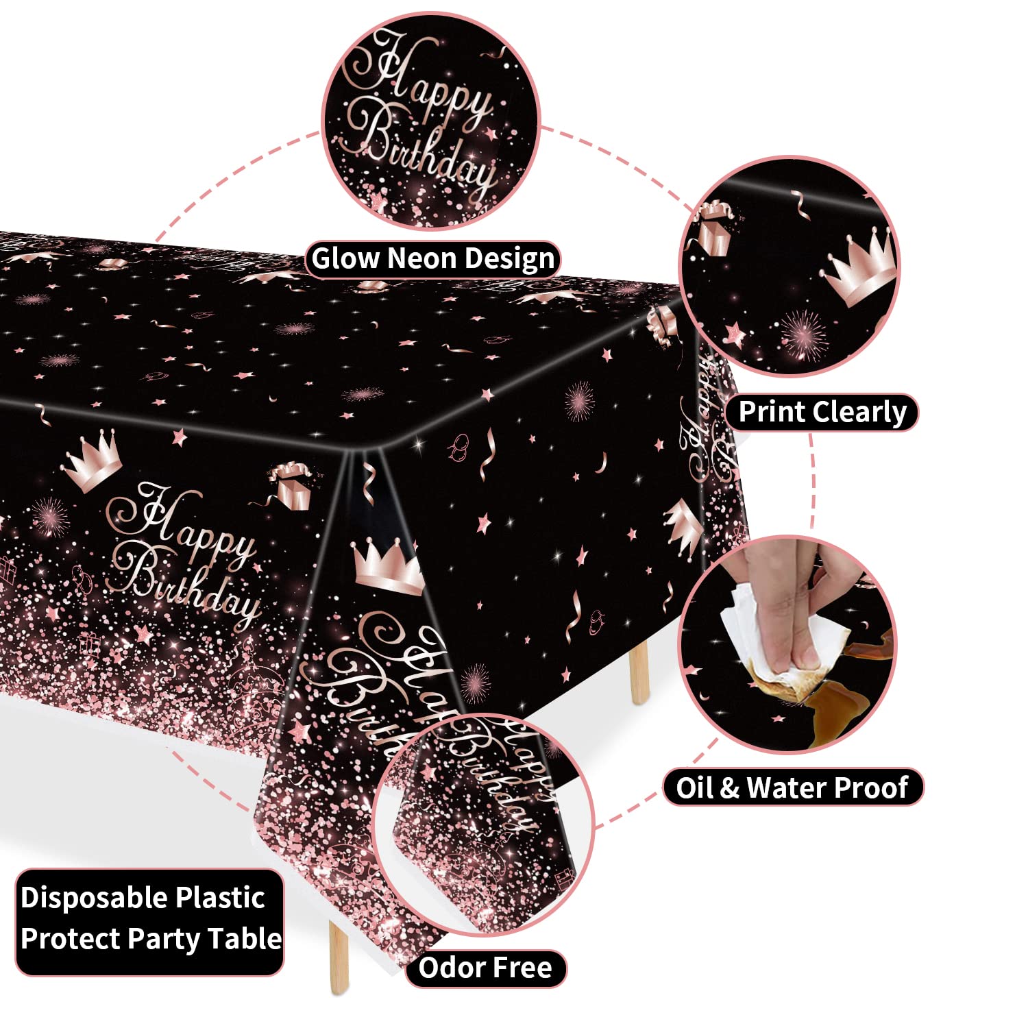 Waterproof Table Protector: These black rose gold Party Tablecloths are waterproof, easy to clean up and great for Indoor or Outdoor Using