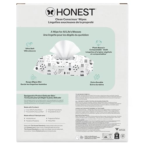 Clean up all of life’s messes with our compostable plant-based baby wipes, made with over 99% water and gentle on sensitive skin. From diaper change duty and messy fingers to sticky counters and gunked-up toys — our ultra-durable, extra thick wipes get the job done! These hypoallergenic plant-based wipes are dermatologist-tested and are made with only 7 transparent ingredients that are toxicologist-audited, making them safe + gentle for baby and the whole family. Wipes made without plastic, fragrances, parabens, and chlorine processing – containing everything you need and nothing you don’t. Now Compostable! Honest Baby Wipes disintegrate in 8 weeks.** For municipal: Always check for the availability and acceptance of municipal/institutional composting facilities as they may be limited in your area. For home: Do not compost if wipes are used to clean non-compostable items like human/animal waste or mixed with cleaning soaps/sprays. Generally, wipes shouldn't be more than 10% of your compost heap. **Following Modified ISO 20200 standards to assess disintegration under home composting conditions.