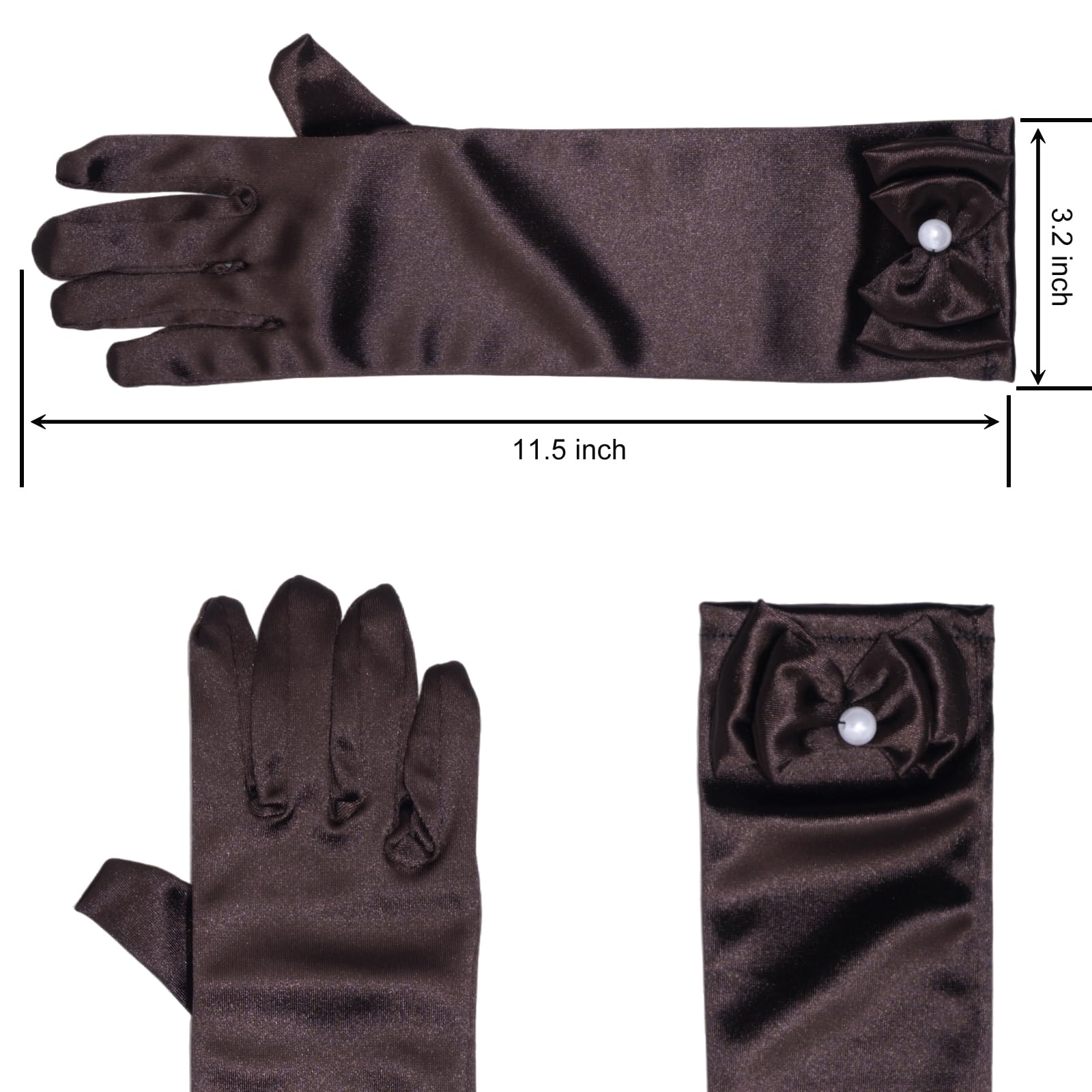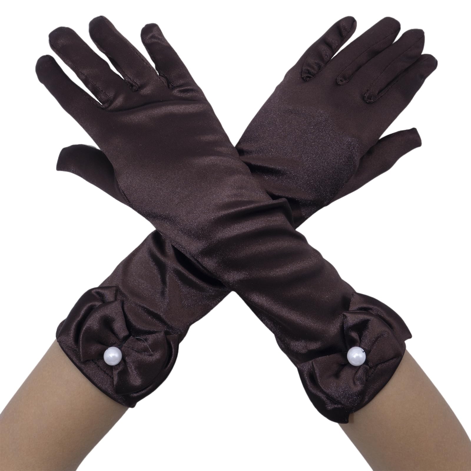 Material : Our girls dress up gloves with slightly stretchy satin fabric,soft to touch,comfortable to wear.