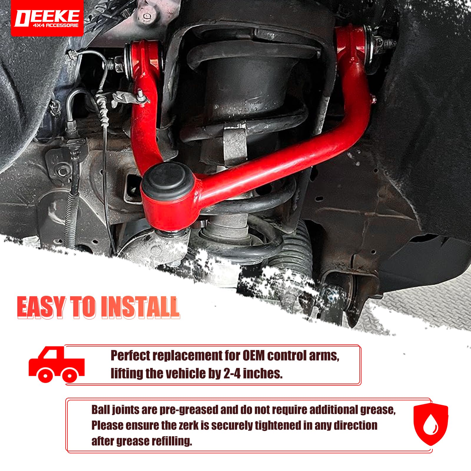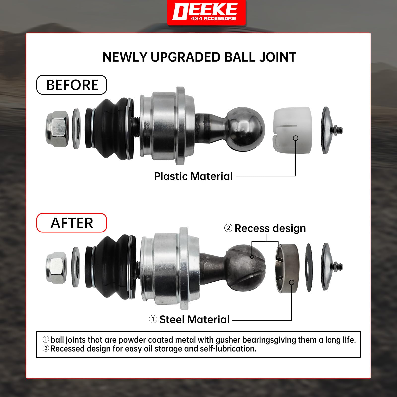 High Quality: Front upper control arms with ball joint assembly are made of high strength steel and sturdy mounting brackets for unmatched strength and durability . The ball joint rotates between the steering joint and the control arm to provide a safe and smooth ride.