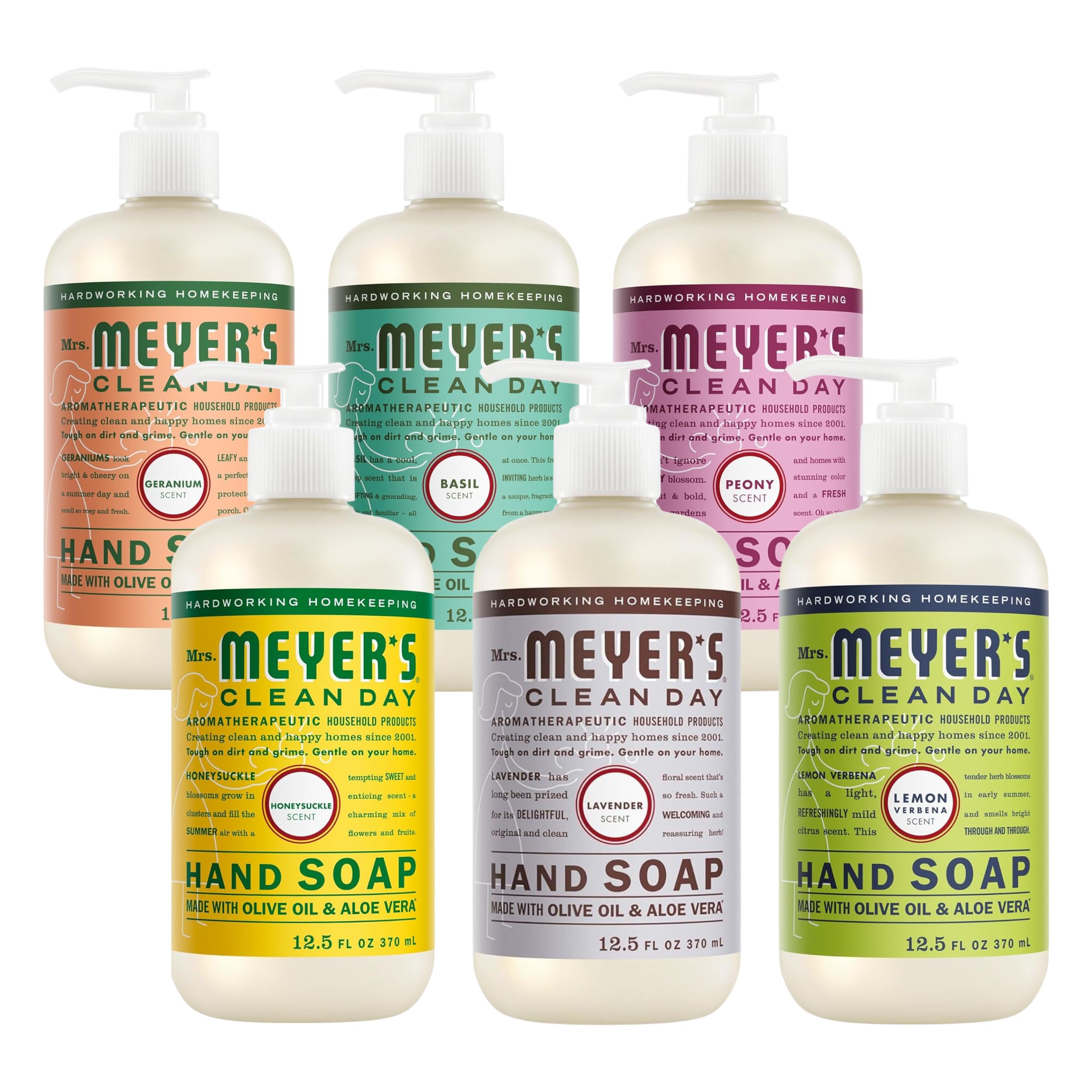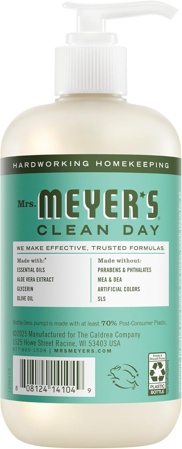 Mrs. Meyer's Clean Day hand soaps are specifically made to clean and freshen hands without over drying, while also providing a special, singular scent for your home,-scented soap has a light, refreshingly mild citrus scent. This tender herb blossoms in early summer and smells bright and new through and through. This hardworking hand soap formula contains olive oil, aloe vera, and essential oils, and thoughtfully chosen ingredients that clean and freshen hands. Made without parabens, phthalates or animal-derived ingredients and always a cruelty-free formula soap. Also available in other garden-inspired scents and products such as Dish Soap and Multi-Surface Cleaner. Mrs. Meyer's - Rooted in Goodness.