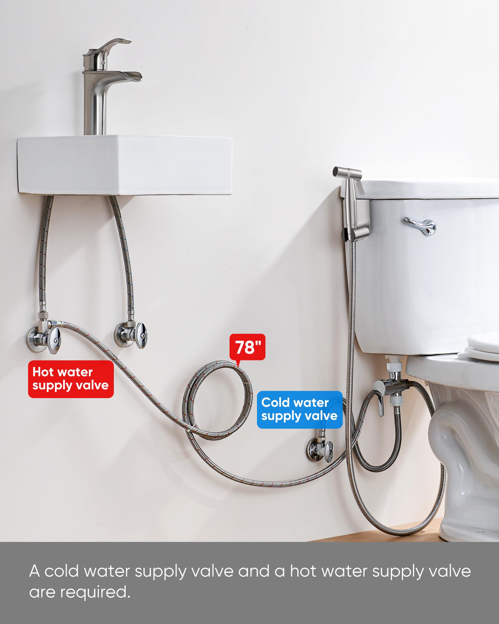 A cold water supply valve and a hot water supply valve are required.