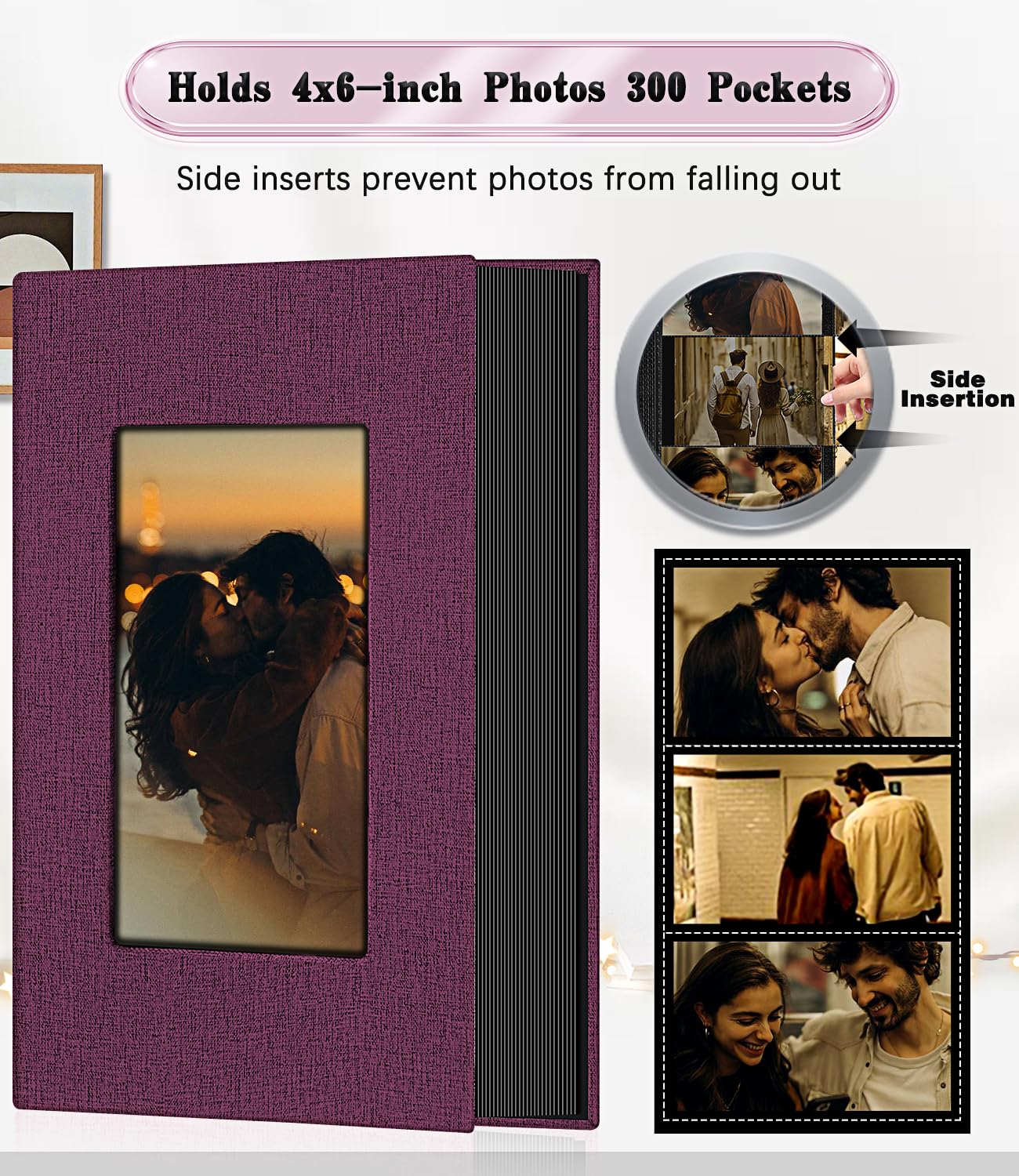 💖 Perfect Storage Capacity: This hardcover photo book is 13 L x 7 W x 2.2 Thick (inches) with 50 sheets/100 pages. 3 horizontal vertical pockets hold a total of 300 4x6 photos.Photos fit snugly in the pockets and won't slip out. Perfect for storing your family, wedding, anniversary, baby and holiday photos, so you can organise and display your photos beautifully and conveniently.