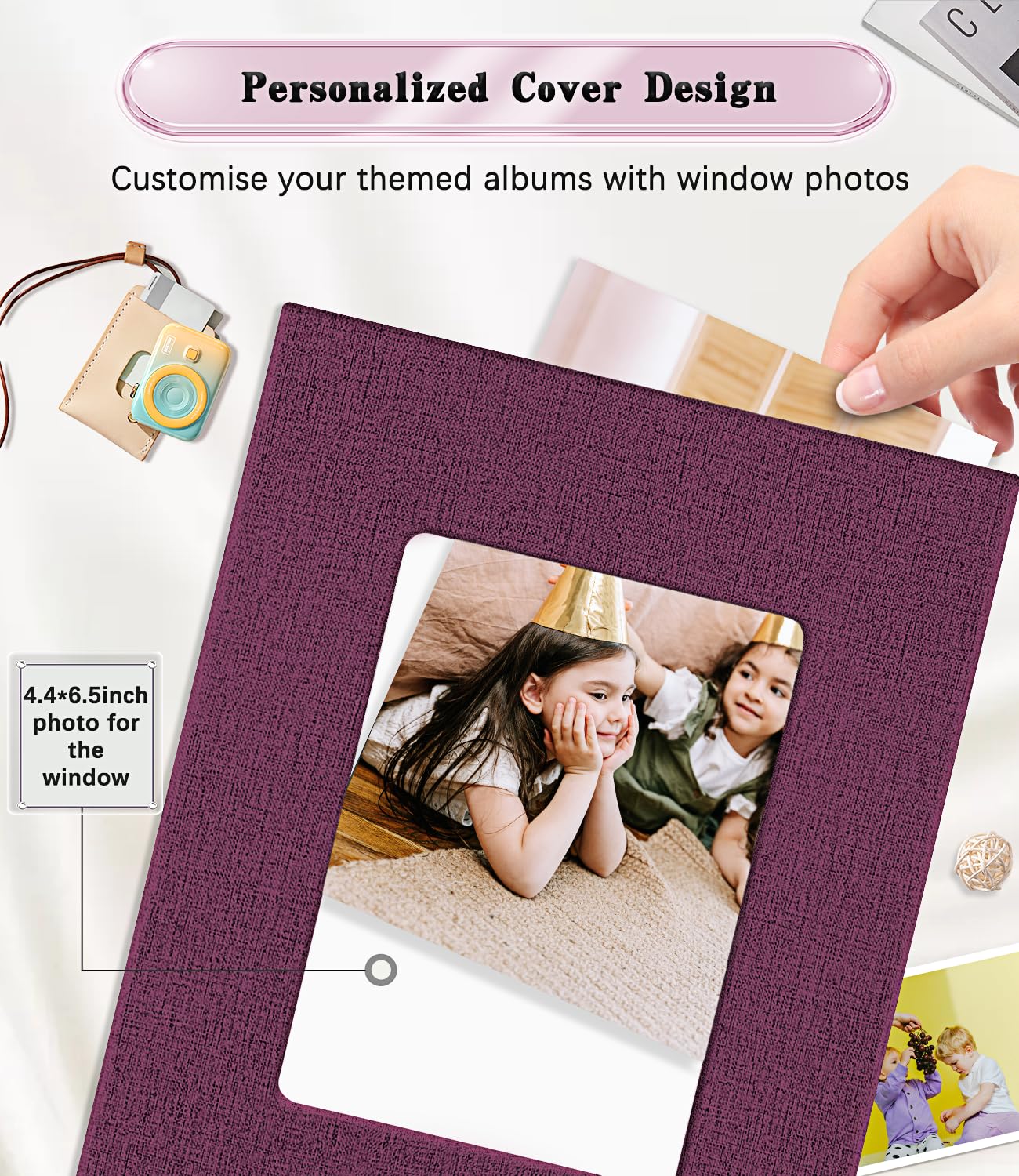 💖 Exquisite Window Design: This 4x6 photo album cover is wrapped in high quality linen, the classic linen cover not only adds vintage sophistication, but also ensures durability and protects your precious photos.The cover of the album has a flexible openable window with replaceable window photos (4.4*6.5 inch), customised to change your personal theme album.