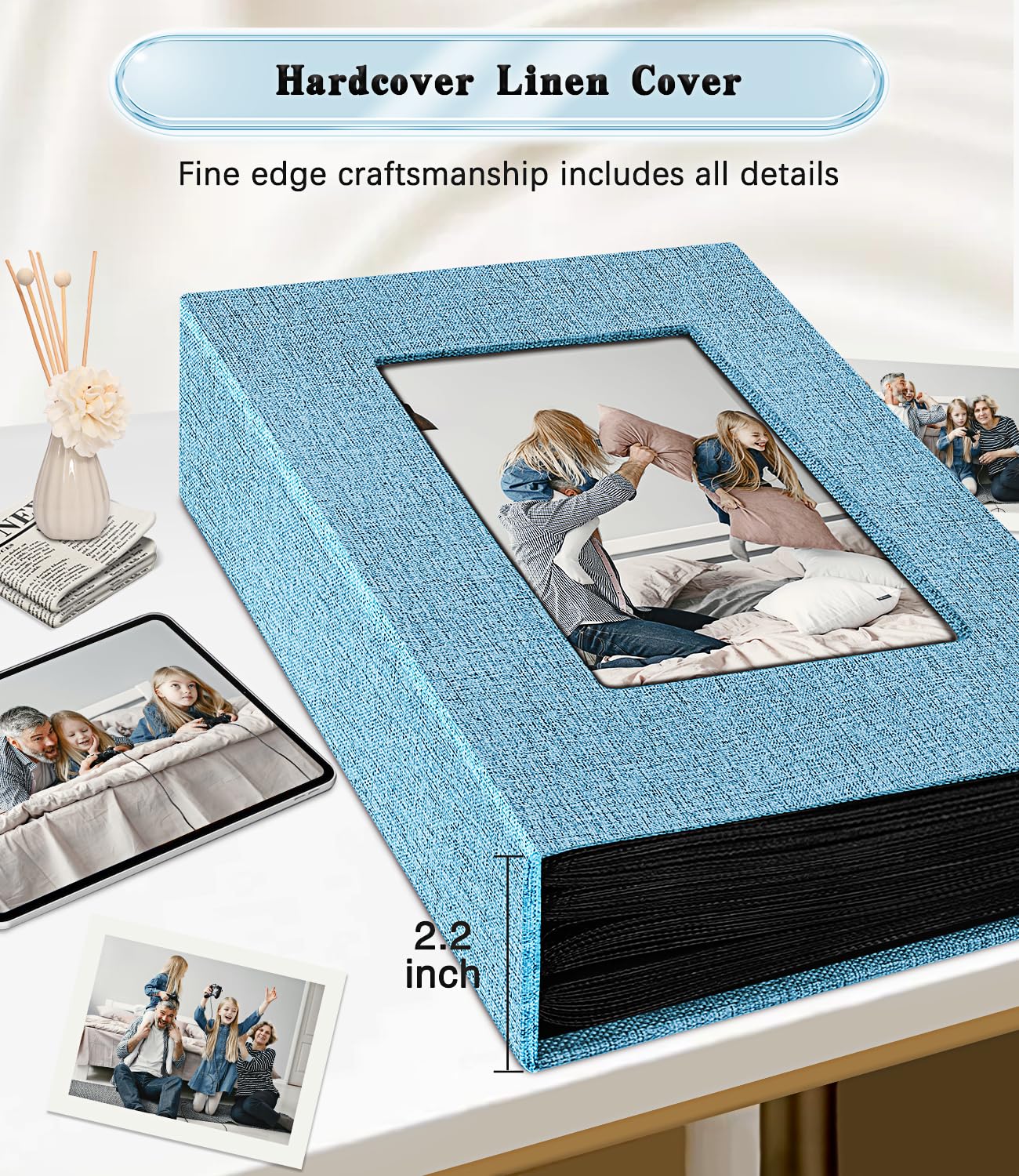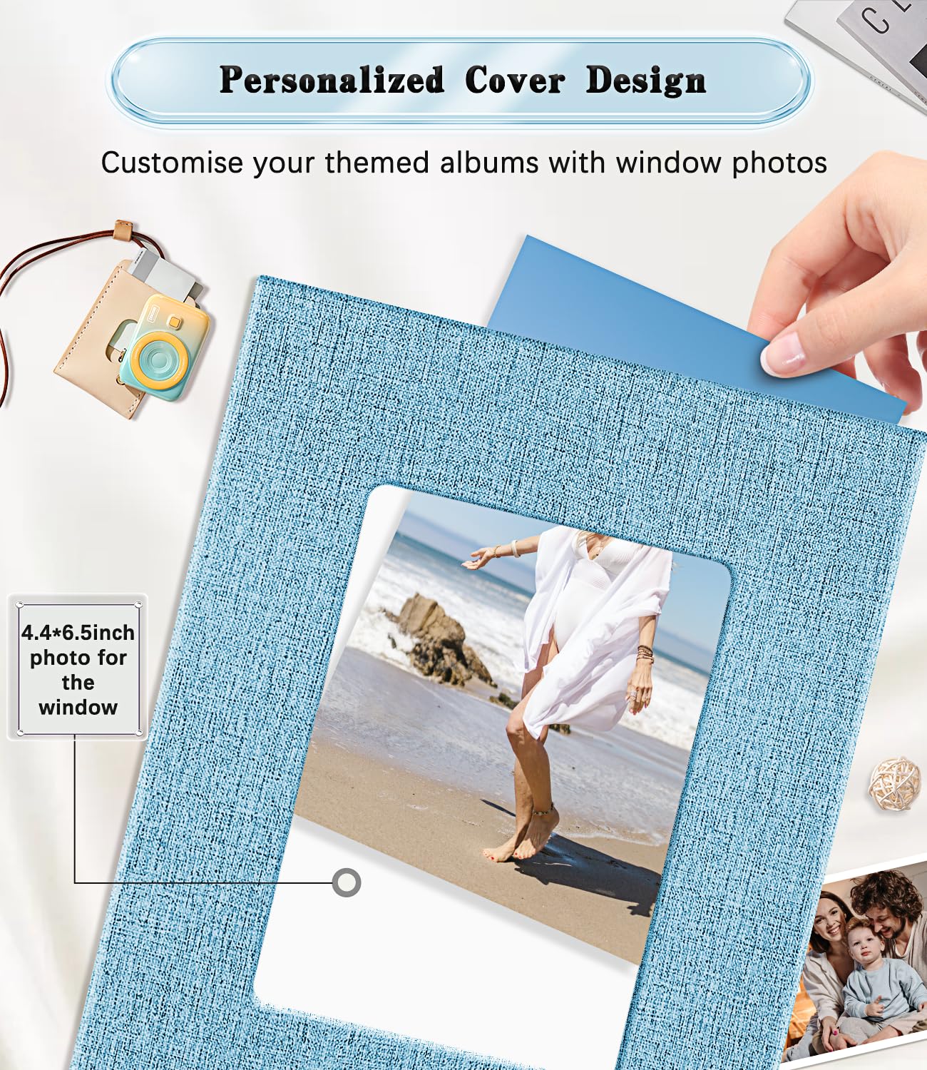 💖 Exquisite Window Design: This 4x6 photo album cover is wrapped in high quality linen, the classic linen cover not only adds vintage sophistication, but also ensures durability and protects your precious photos.The cover of the album has a flexible openable window with replaceable window photos (4.4*6.5 inch), customised to change your personal theme album.