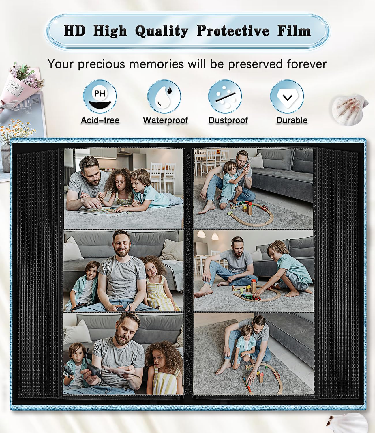 💖 Acid-Free Pages:This 4x6 slide-in album insert is durable and the pages are acid and PVC free. Ensures that photos won't deteriorate or yellow over time, so your precious memories will be preserved for years to come, as fresh and clear as when they were taken, allowing you to relive those special moments whenever you want.