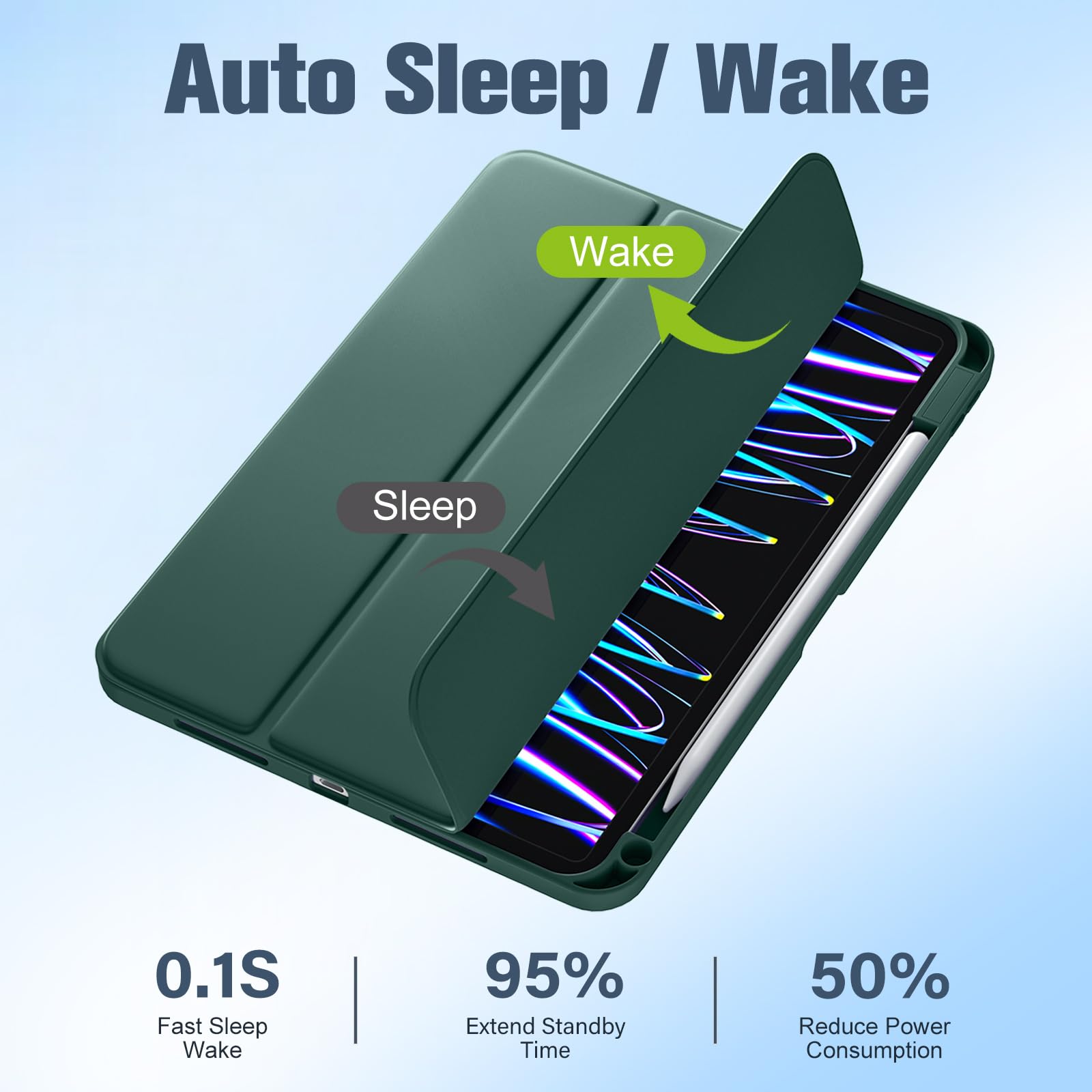 【Auto Sleep & Wake 】This iPad Pro m4 11 inch case supports auto wake and auto sleep functions, enabling significant power conservation and extended battery standby time. As a result, charging frequency is drastically reduced, enhancing overall device efficiency.