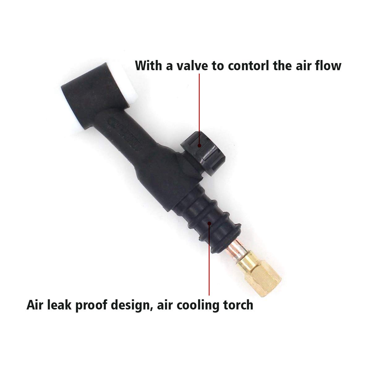 Air cooling design, and a gas valve is on the wp17 torch head to control the air flow, help you do TIG work well