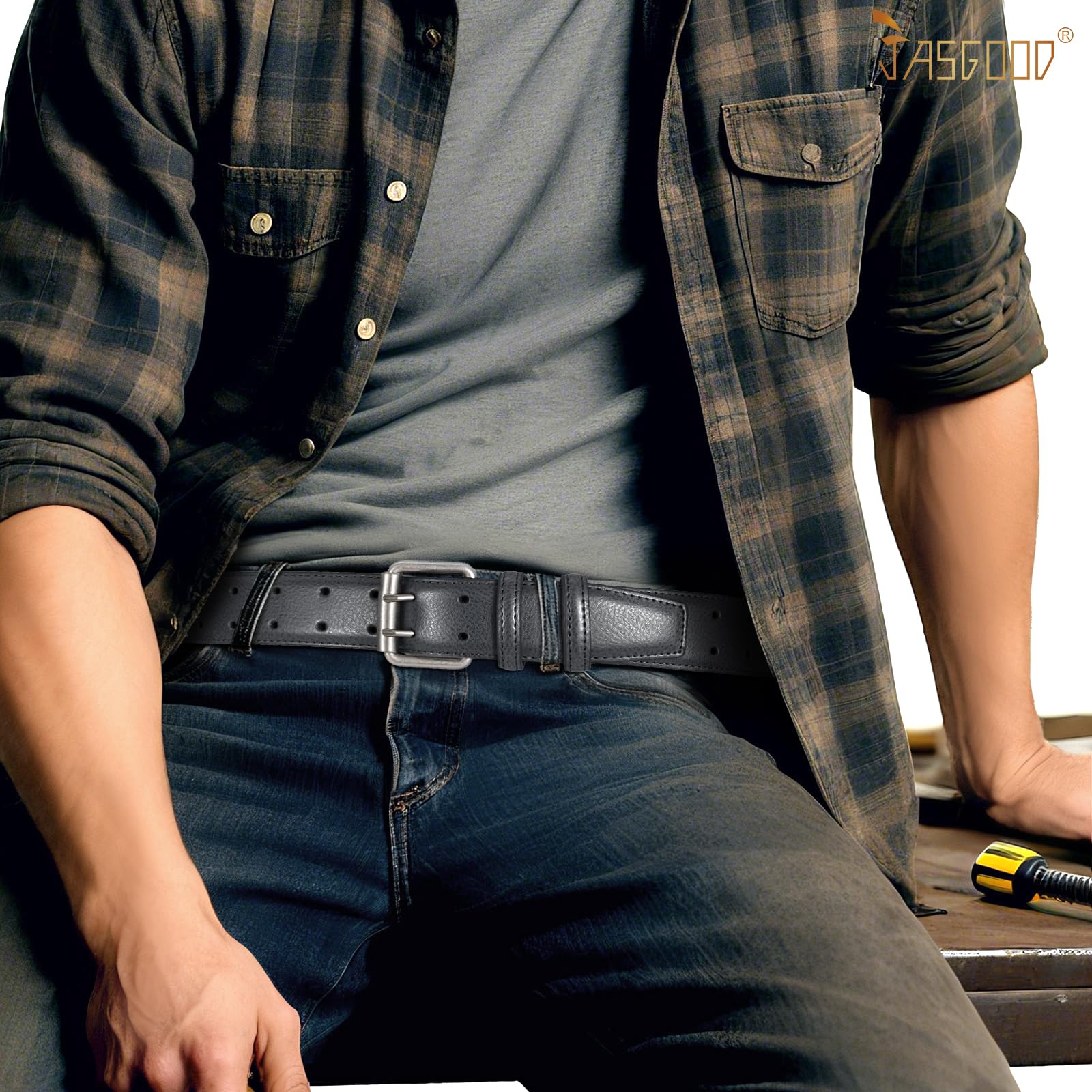 Men Work Casual Belt: This black leather belt can be your default belt that is great for work and a little stylish. Also great for our casual wear with jeans,pants. You can also use this belt to match your rock outfit. Belt width is 1.5" which can across most your pant loop to accessorizing your wardrobe.