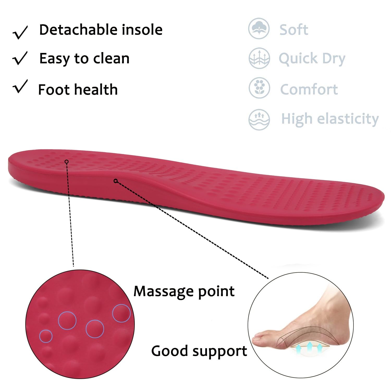 BETTER SUPPORT: Our unique insole provides arch support, absorb impact to reduce the stress on your feet, joints, back