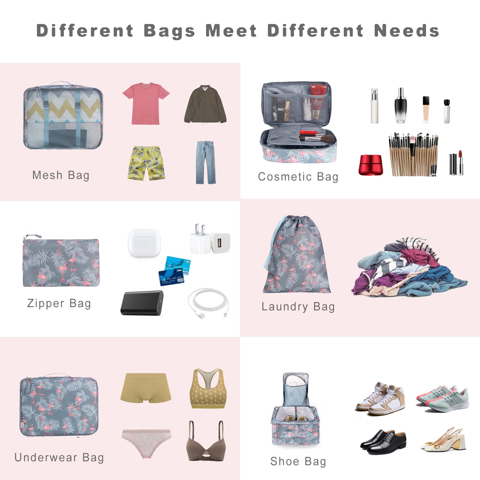 Versatile and Multi Functional: Fit into different sizes of suitcase; Small size bag in the set can also fit airline carry-on bags, tote, weekender, backpack, duffel bag; Suitable for family breaks, business travel, vacation, hiking, camping, trip, etc