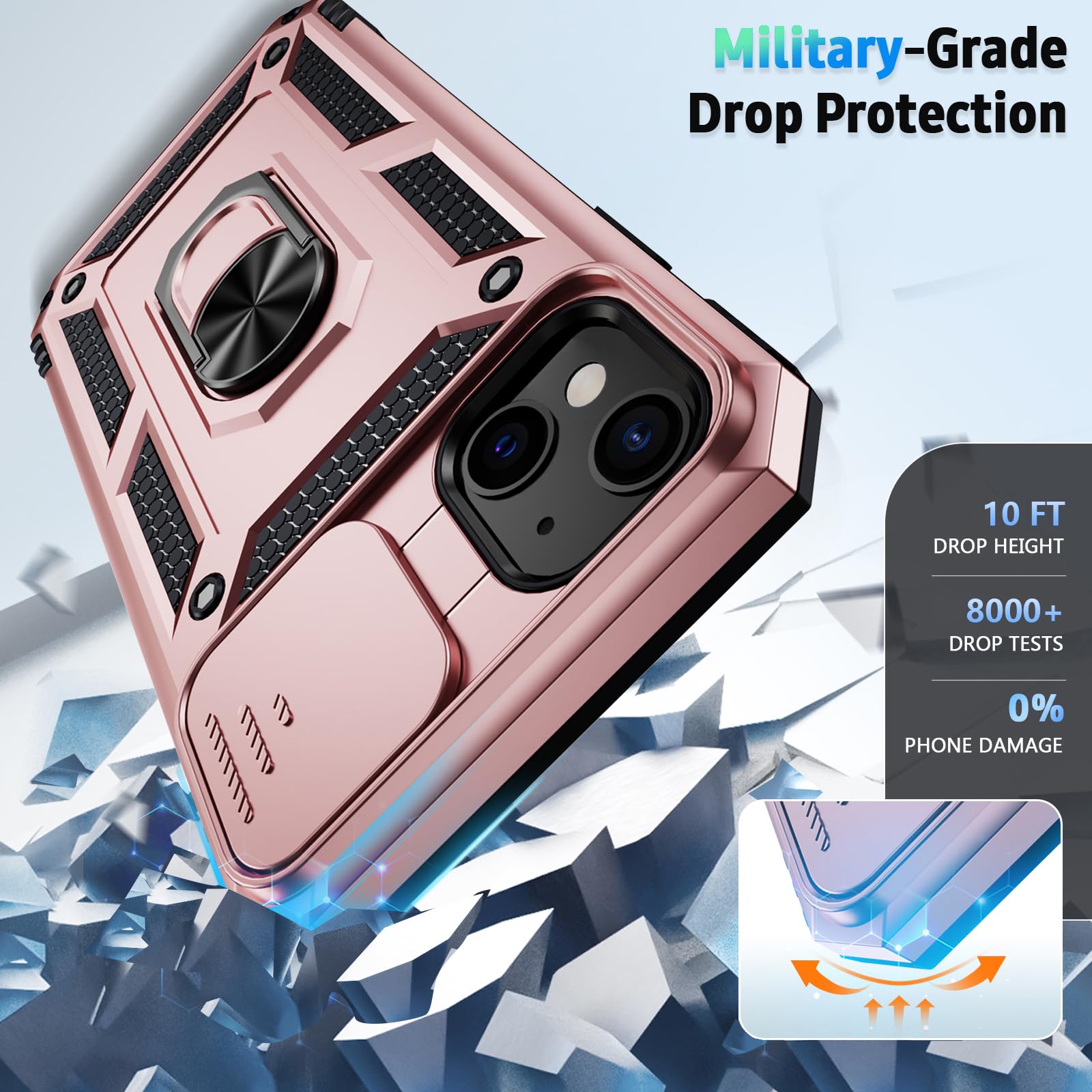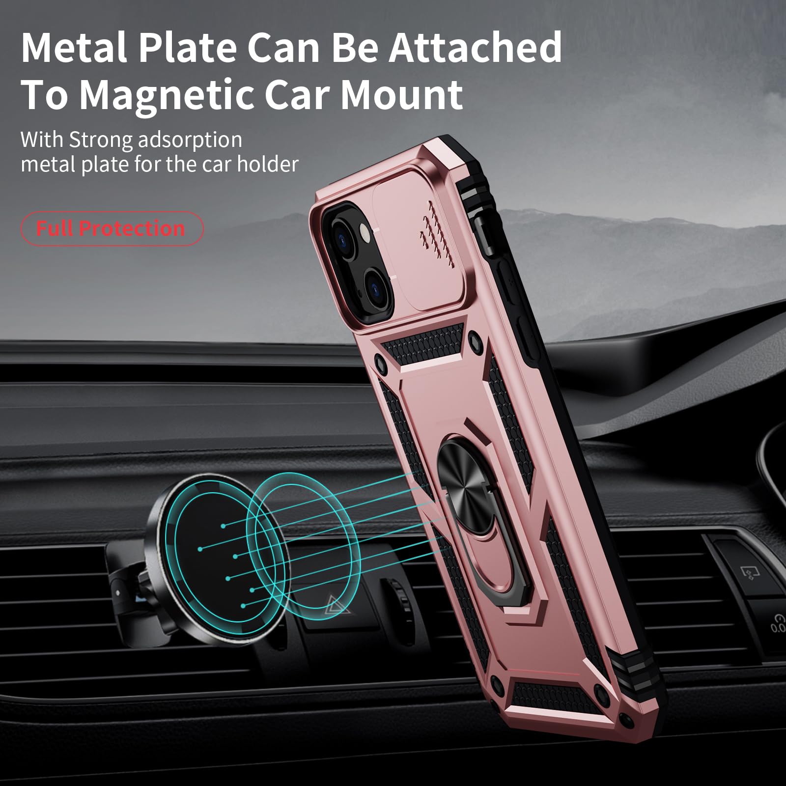 π± [Durable Case with Delicate Design]: Armor Case with sliding camera cover specially designed for with iPhone 13 mini .β οΈ Please note that the case is not compatible with wireless charging due to the presence of a metal ring on the back.