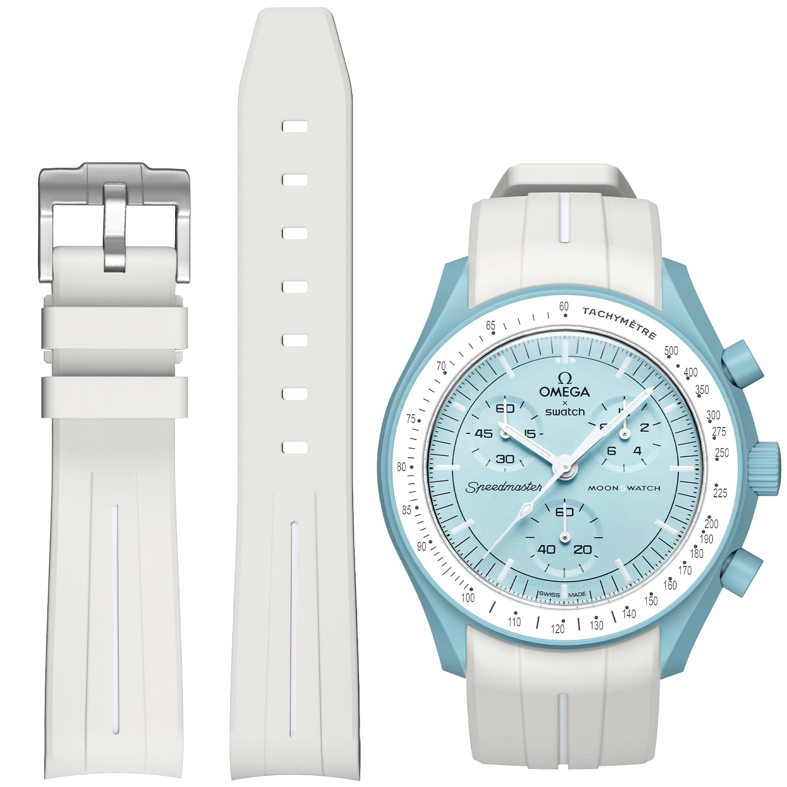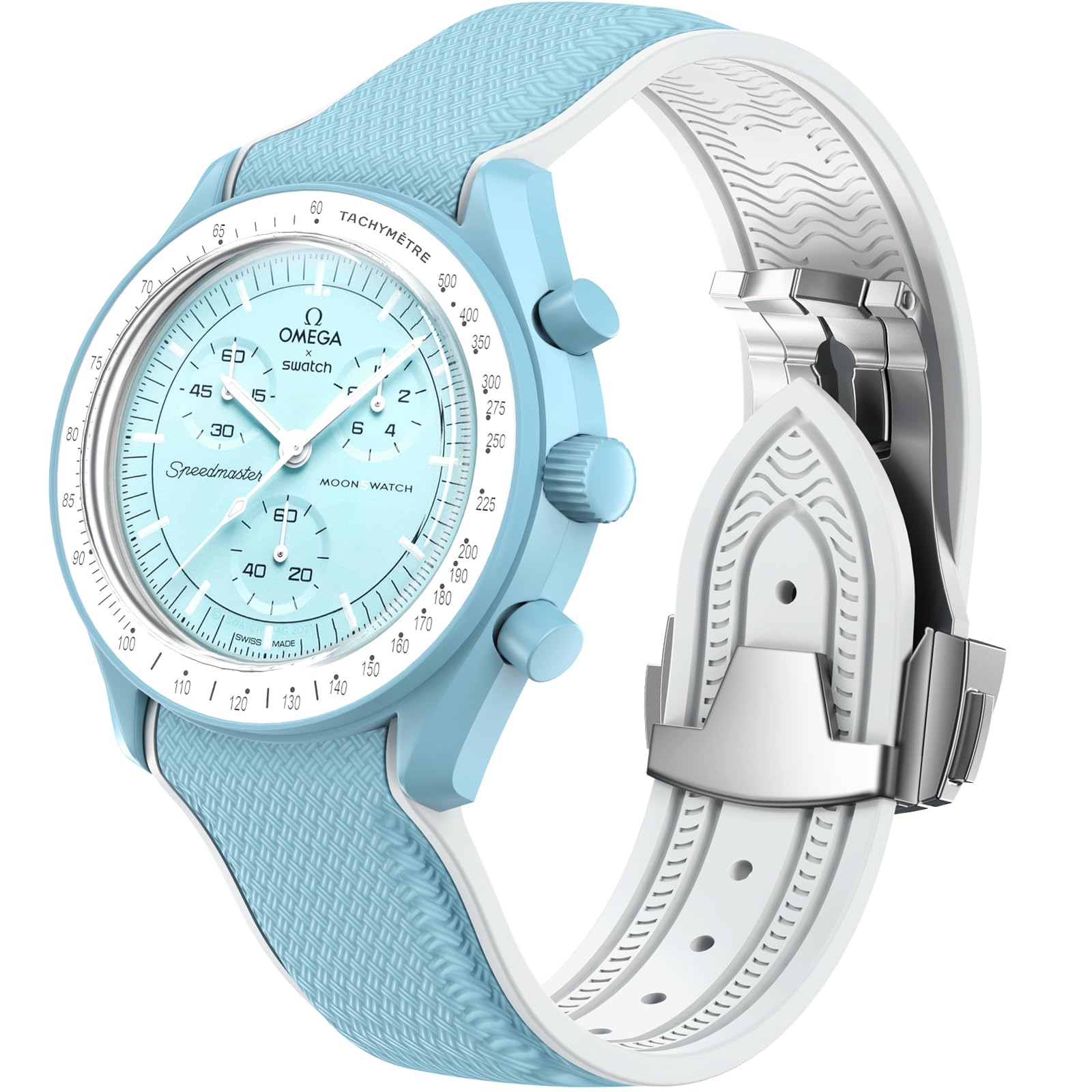 【Compatibility and Folding Buckle】Elevate your omega swatch moonwatch watch with our collection of premium watch strap with one set folding buckle.These straps are designed to be compatible with various models, including Omega x Swatch MoonSwatch Speedmaster 20mm lug watches. Whether you're looking for an strap for Omega Swatch Moonswatch Speedmaster Mercury, Venus, Earth, Mars, Jupiter, Saturn, Uranus, Neptune, Pluto, Sun, Moon and Moonphase in general, our selection has you covered.