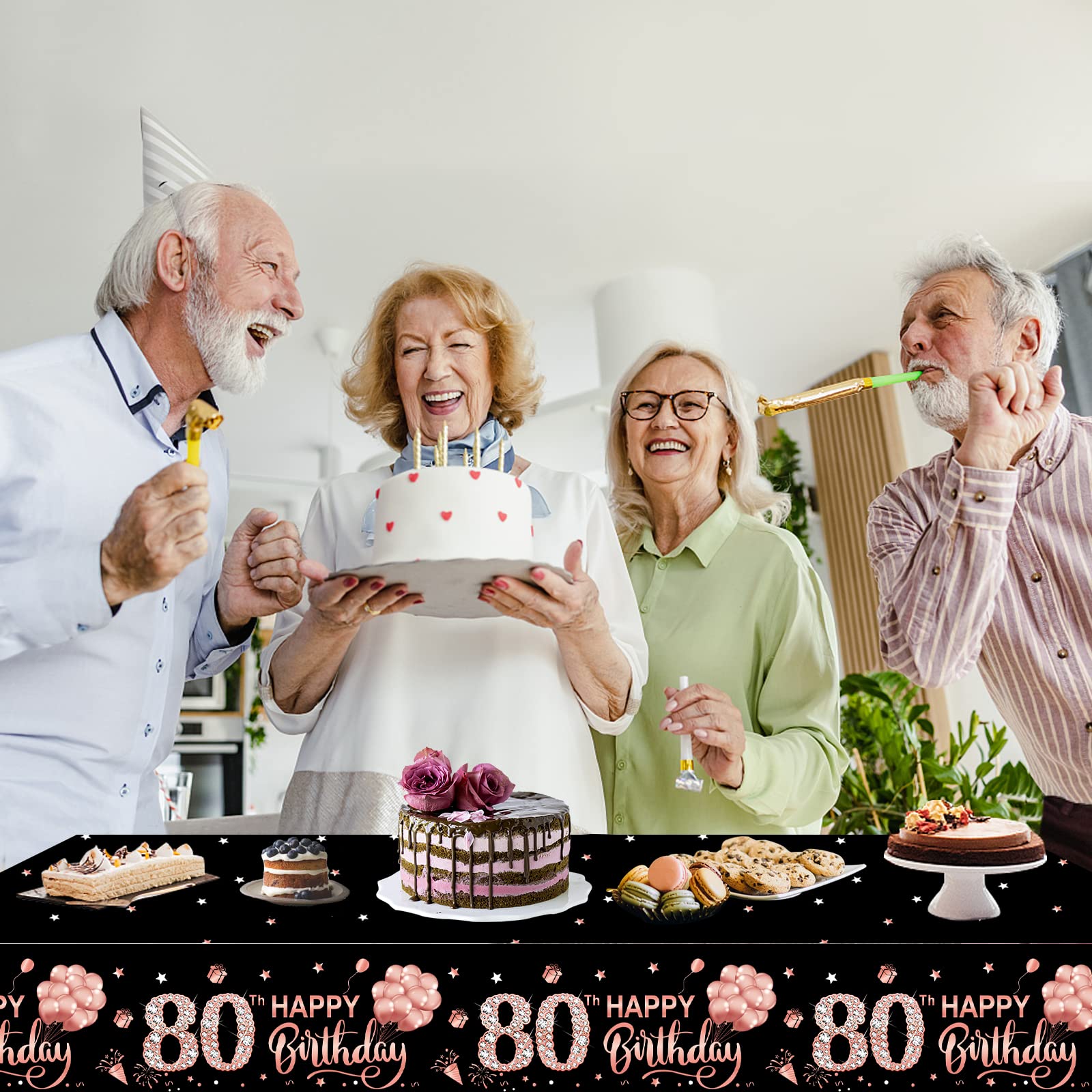Wide Range of Use: It is suitable for 80 year old birthday party table decorations for women, indoor and outdoor use. The rectangular tablecloth can be used to decorate your dessert table and party table, and it will be a good background for party photos