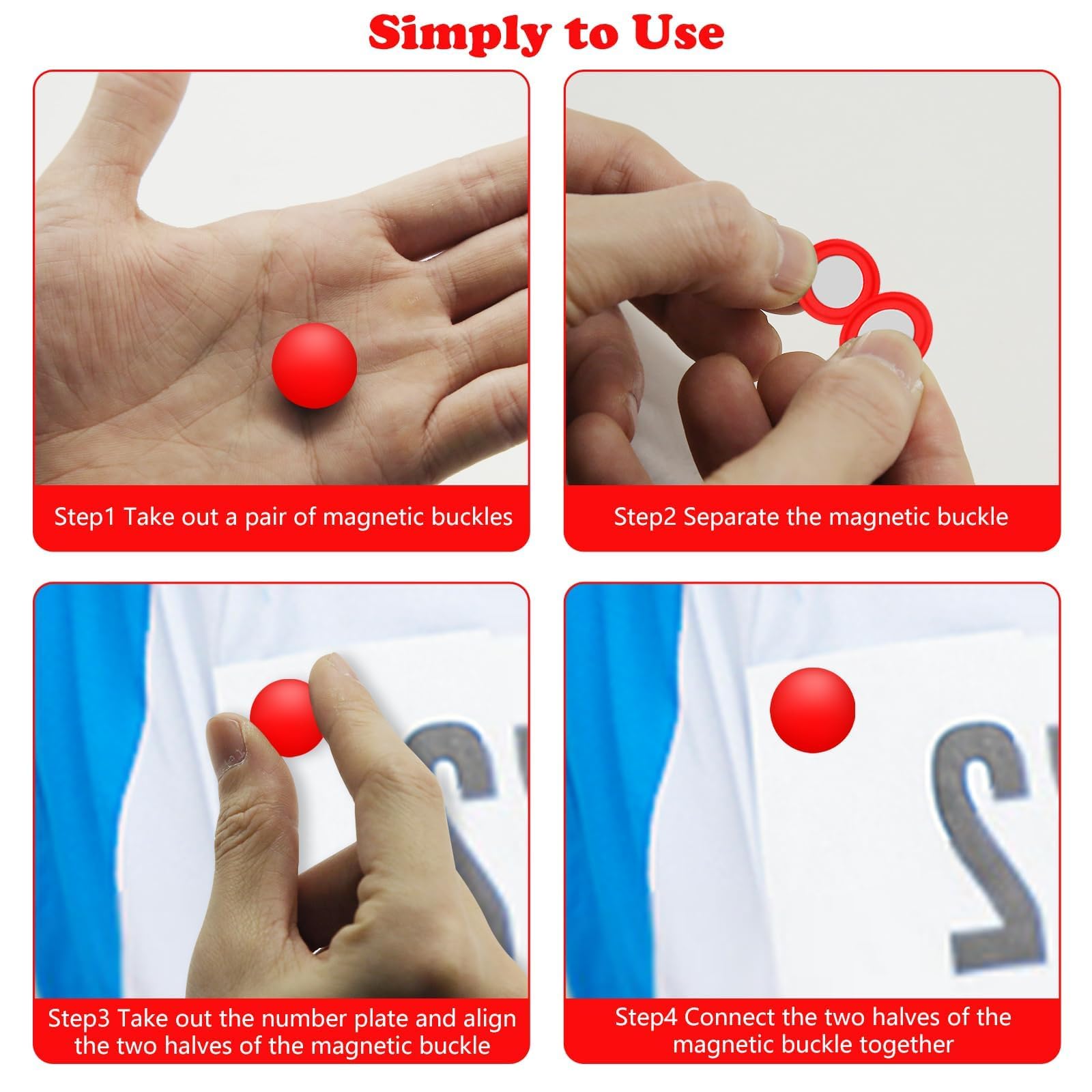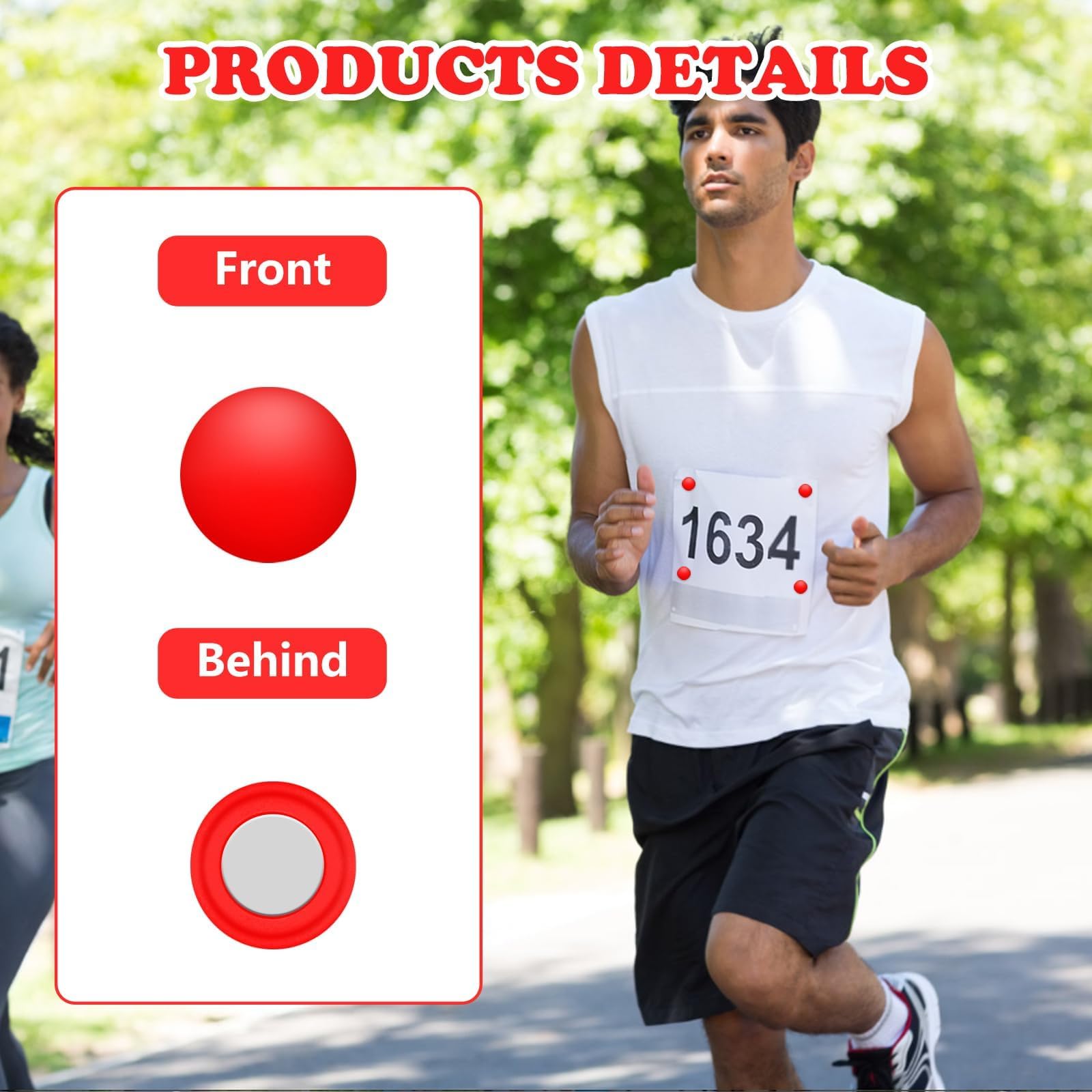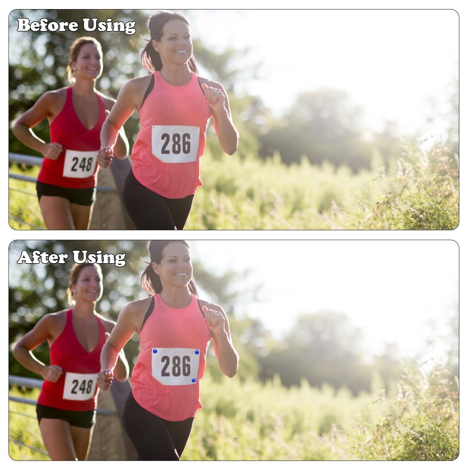 【Easy to Use】First, take the bib clips for runners out of the package and separate them into two separate parts. Next, pick up your number cloth (runner number cloth) and choose the corner you want to fix. Put one of the magnetic clips on the front of the number cloth, close to the edge, and then put the other on the back to align them so that they fit tightly. It is simple and easy to operate, and it is a good helper for race runners.