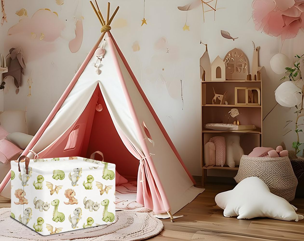 FOLDABLE BASKET SIZE: 14.9”L×10.2”W×9.8”H inches. Save on space when not in use and fold flat for easy storage, Perfect for gifts, books, clothes, games, doll accessories, or match-box cars.
