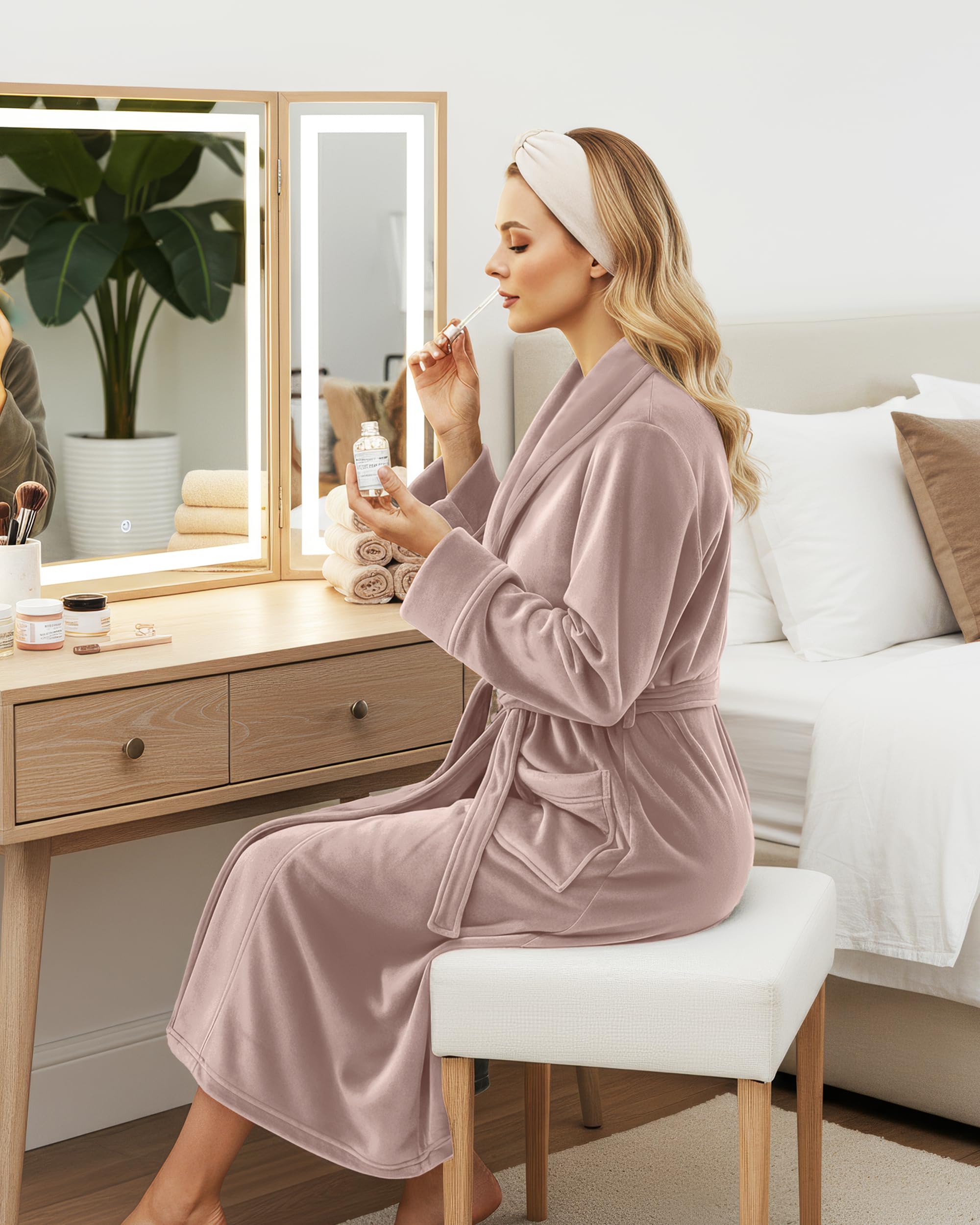 Description Wrap yourself in comfort with our fleece women's robe featuring a cozy shawl collar for added warmth and style. This robe for women is made from ultra-soft, fluffy fleece that feels gentle on the skin, perfect for lounging or lazy mornings. Designed with comfort and elegance in mind, this women’s robe offers a relaxed fit and secure tie closure. Crafted as a non-absorbent bathrobe, it’s ideal for staying warm and cozy rather than drying off. Whether you're relaxing at home or getting ready for bed, this women bathrobe is your go-to for all-day coziness. Experience luxury and softness with a robe that’s as stylish as it is snug.