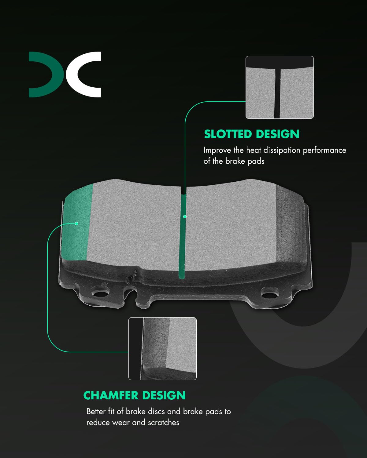 Brake Pads Feature : The pads with slotting design increases friction, heated evenly, heat faster,better ventilation, improves drainage.Ensure exceptional stopping power and quiet operation