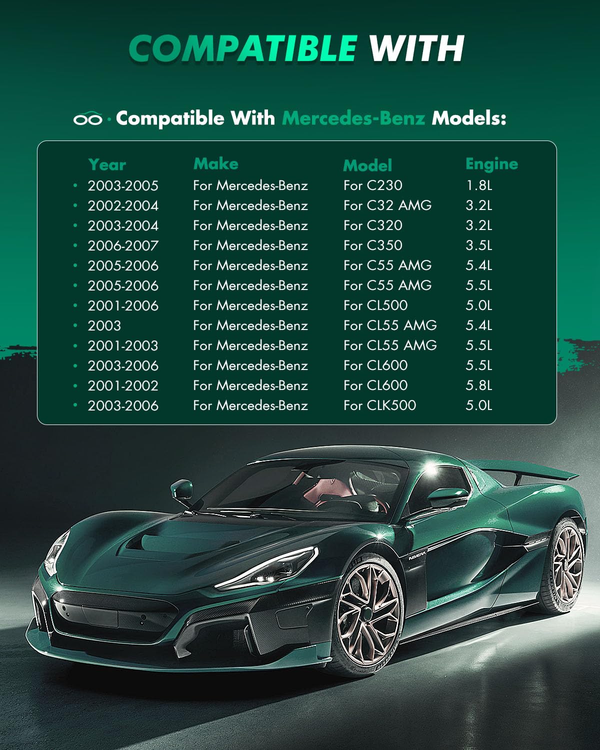 COMPATIBLE VEHICLES : For Benz E500 2003-2006,For Benz E55 AMG 2003-2006,For Benz E550 2007-2009,For Benz ML430 2000-2001,For Benz ML500 2002-2005,For Benz ML55 AMG 2000-2003,For Benz S350 2006,For Benz S430 2000-2006,For Mercedes-Benz S500 2000-2006,For Mercedes-Benz S55 AMG 2001-2002,For Mercedes-Benz S600 2001-2006,For Mercedes-Benz SL500 1999-2006,For Mercedes-Benz SL550 2007-2012,For Mercedes-Benz SL600 2000-2002,For Mercedes-Benz SLK350 2005-2006,For Mercedes-Benz SLK55 AMG 2007-2010