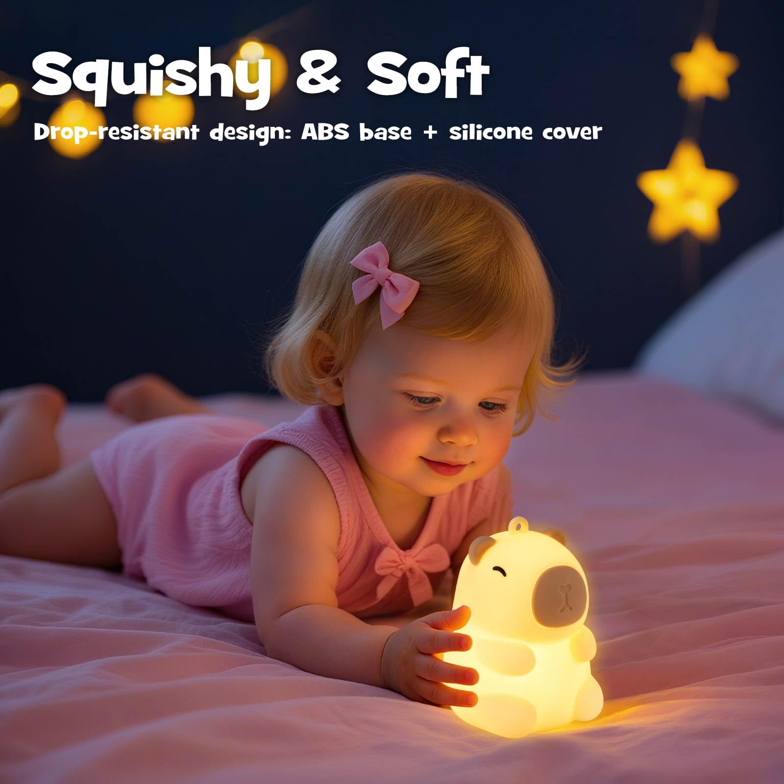 Squishy & Comfortable Silicone Design - Crafted from soft silicone, this squishy christmas capybara night light is delightfully squeezable and safe to handle. Its cute shape returns to its original form even after a good squeeze or playful poke, making it a quirky stress-reliever. The seamless exterior means there are no cracks to trap dirt, and a quick wipe with a damp cloth restores its shine.