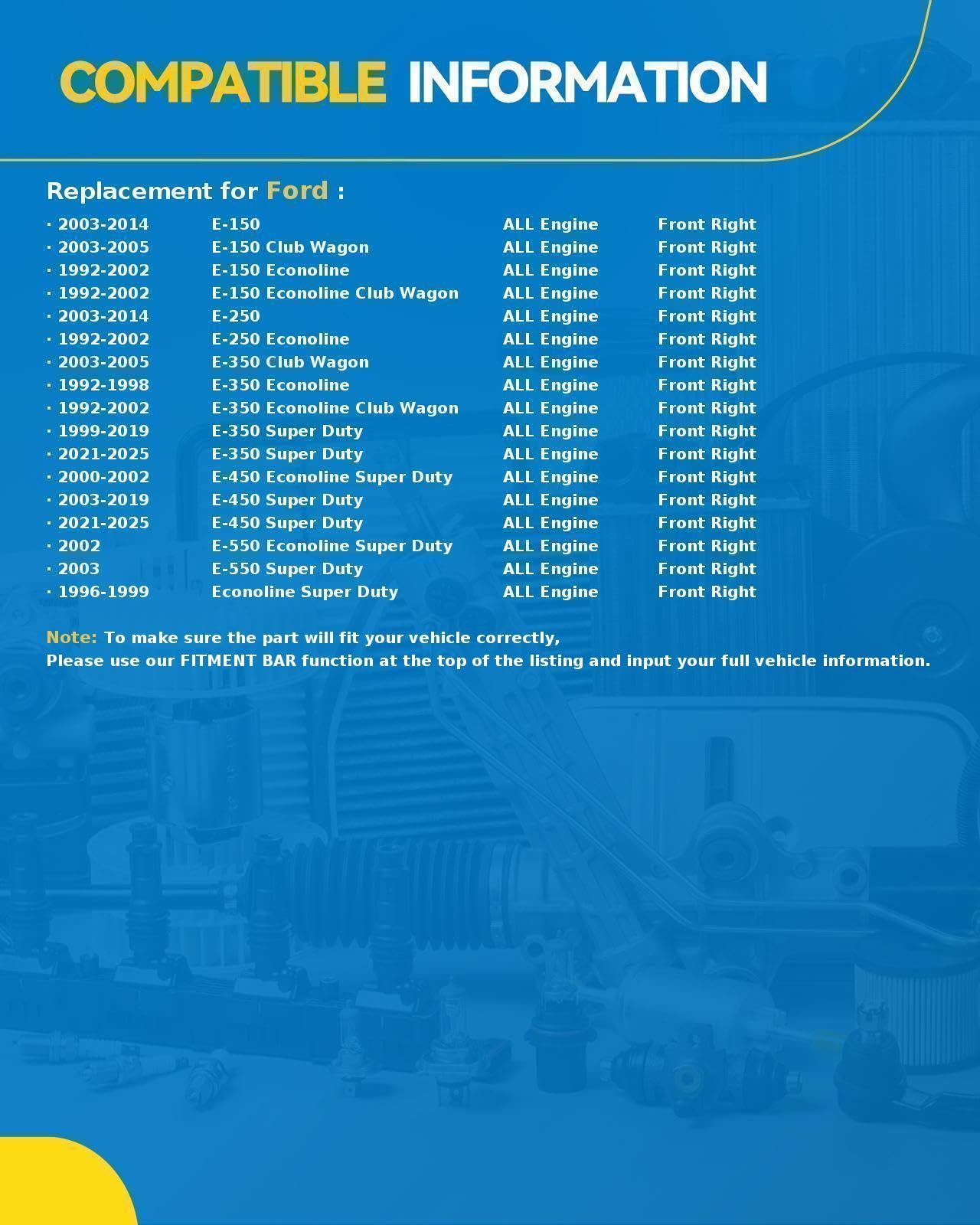 Vehicle Fitment:Window Regulator and Motor Assembly compatible with Ford 2003-2014 E-150 2003-2005 E-150/350 Club Wagon 1992-2002 E-150/250/350 Econoline, E-150/350 Econoline Club Wagon 2003-2014 E-250 1999-2025 E-350/450/550 Super Duty 2000-2002 E-450/550 Econoline Super Duty 1996-1999 Econoline Super Duty.Please MATCH your vehicle on the left top before purchasing