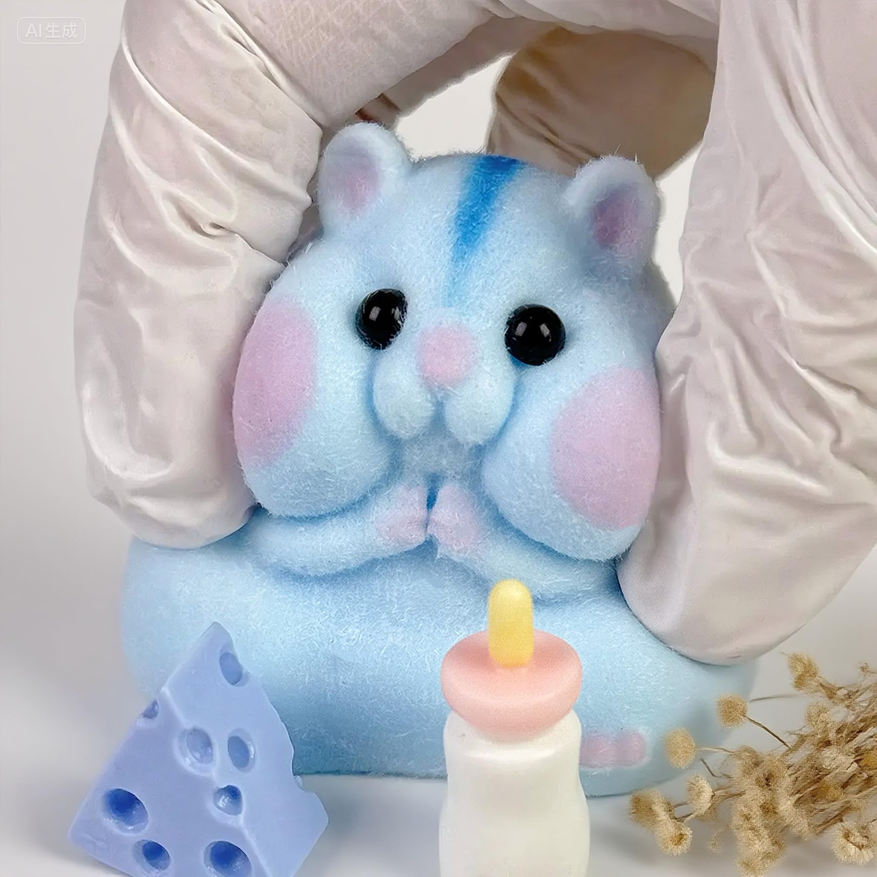 Handmade Taba Squishy Hamster Toy, Cute Squishy Hamster Fidget Toy, Realistic Hamster Toy, Soft Silicone Mochi Furry Toy, Stress Relief Gift for Adults & Kids, Sensory Anxiety Plushie (Blue)