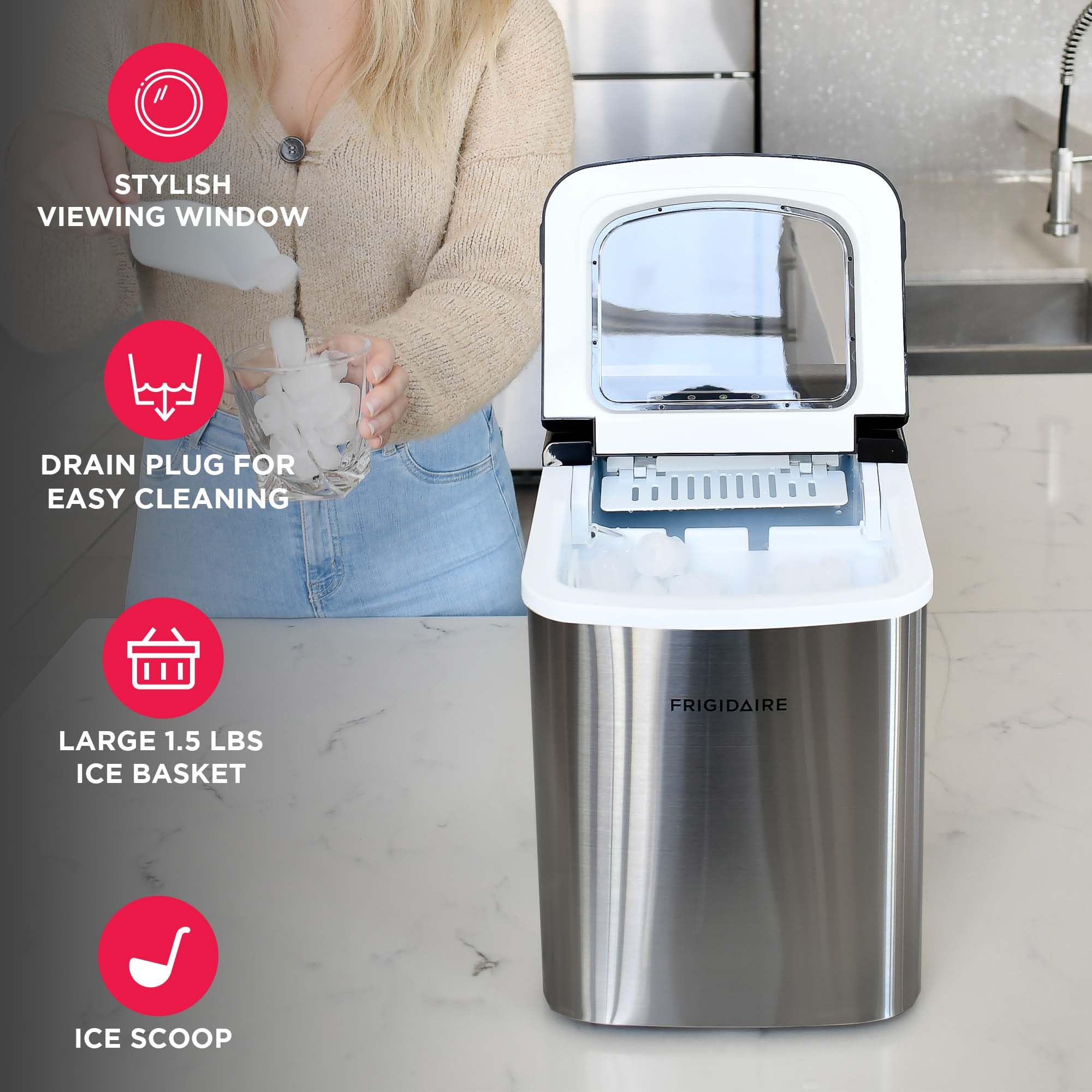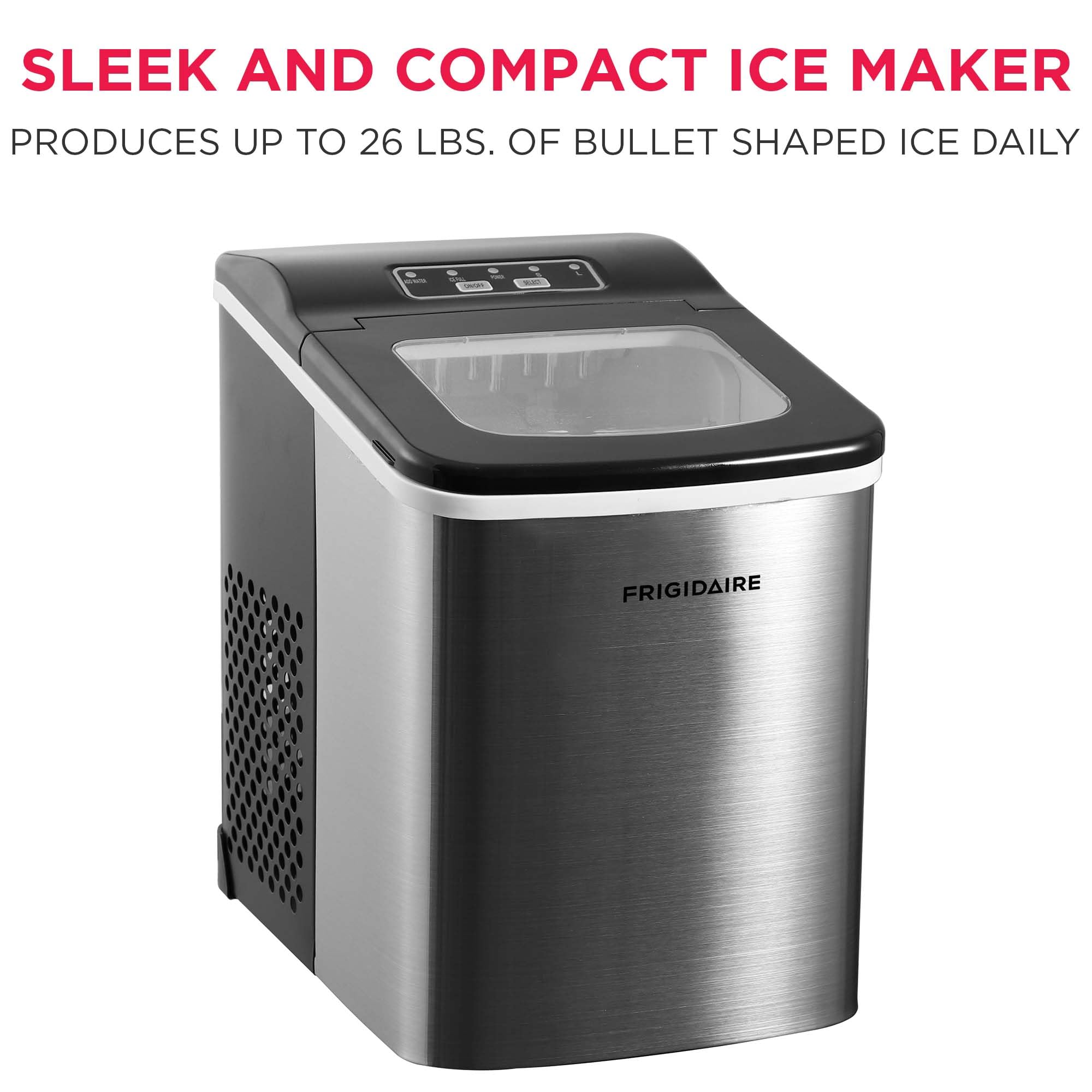 Frigidaire Compact Countertop Ice Maker, Makes 26 Lbs. Of Bullet Shaped Ice Cubes Per Day, Silver Stainless