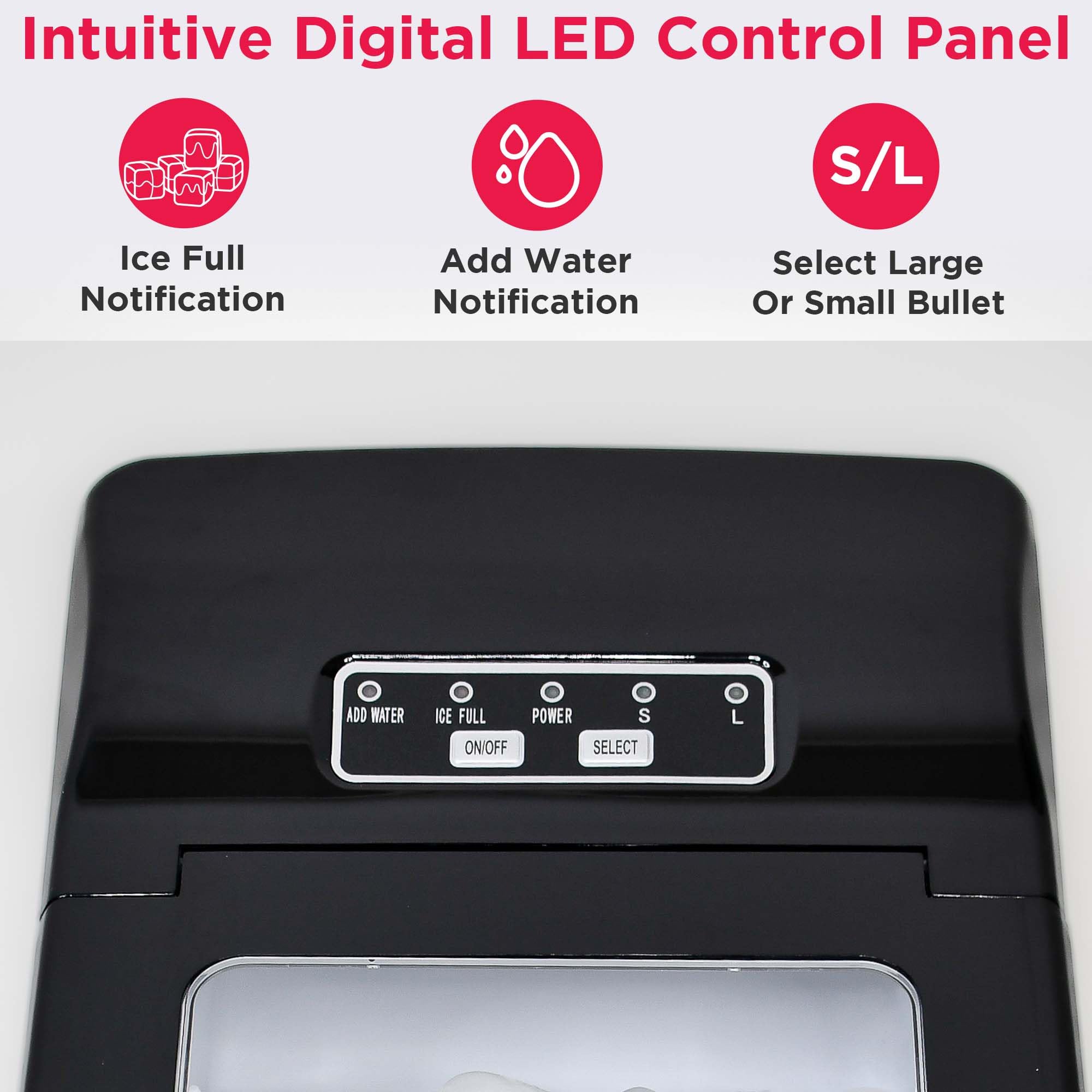 HIGH EFFICIENCY - Make bullet shaped ice cubes in less than 9 minutes and store up to 1. 7 lbs. at a time