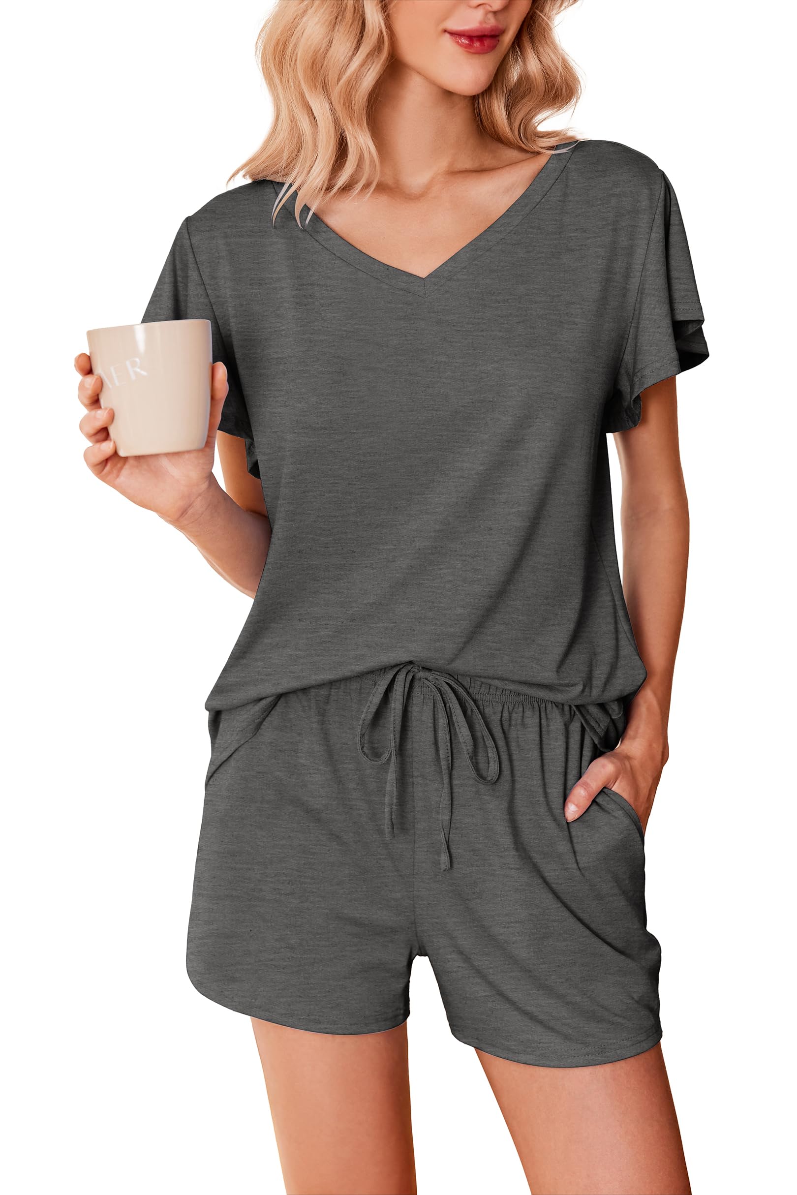 BEST GIFT: Drift off to dreamland in this lightweight and soft PJs short set with a cute v-neck short-sleeved pajama top and bottoms, and enjoy a cozy time at home. This ruffle short-sleeved sleepwear set can be a good gift for your girlfriends, mom, and friends.