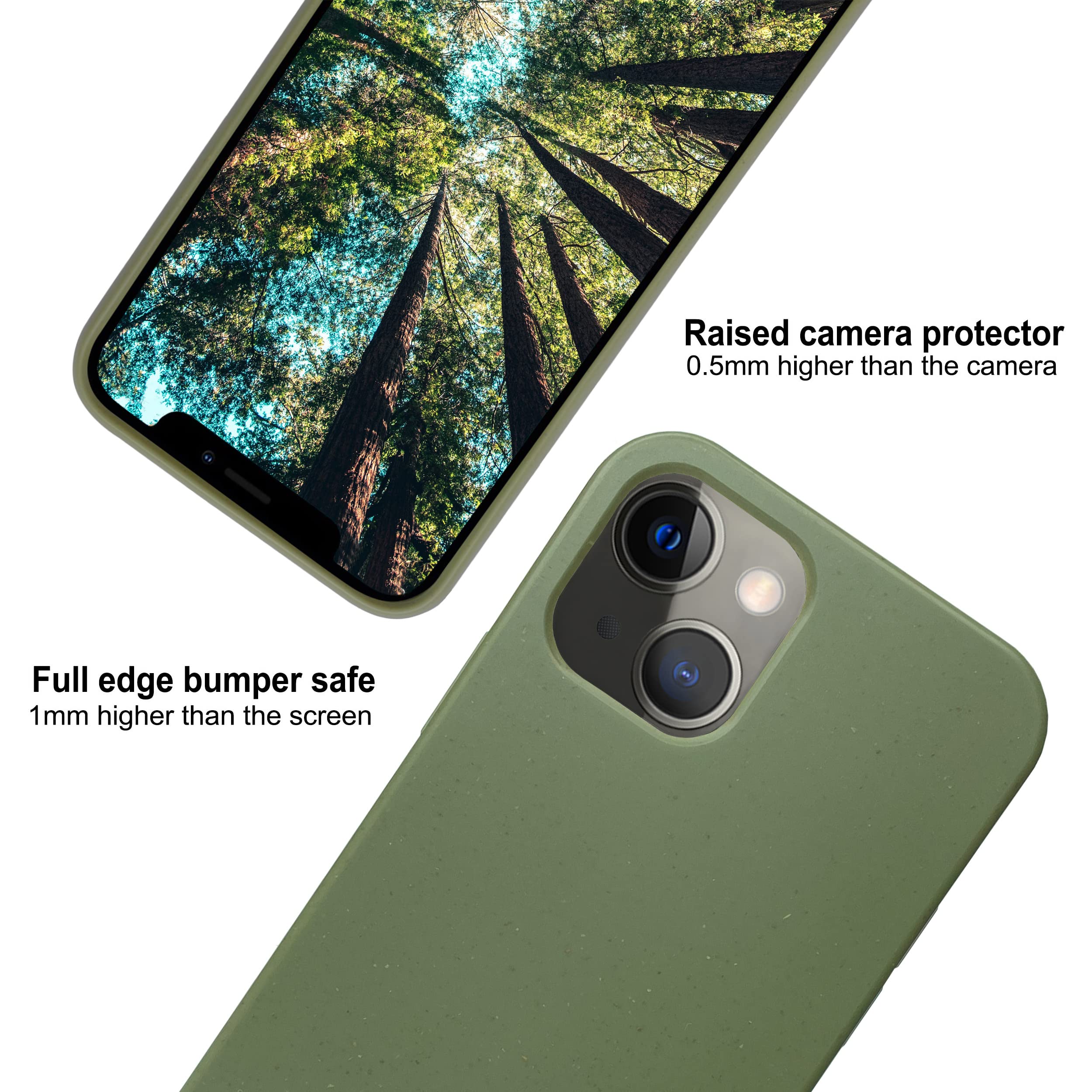 🛡️ FULL PROTECTION: Our ECO mobile case for iPhone 15 has been engineered and tested to ensure resilience and durability. The shock absorbing qualities of TPU will provide good shock proofing and anti-drop protection. The camera and front edges are 0.5 mm and 1.0 mm higher respectively, ensuring the iPhone's camera and screen are protected.
