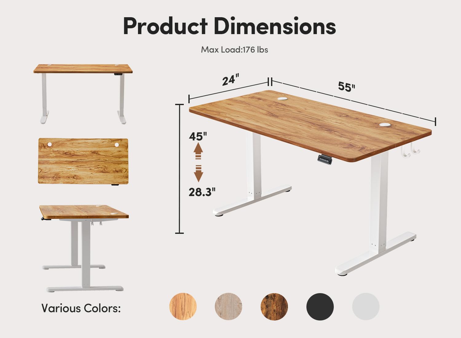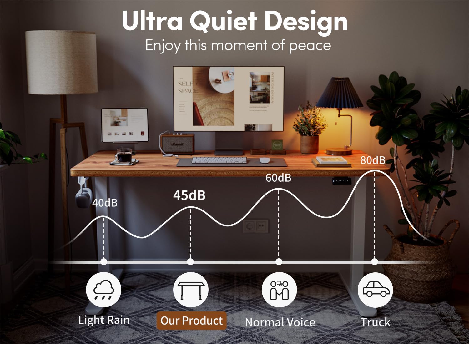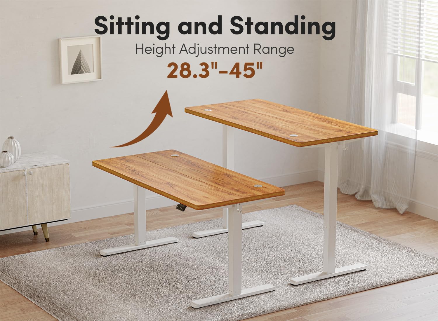 Height Adjustment: Electric motor smoothly adjusts from 28.3" to 46.5" with quiet operation under 45 dB