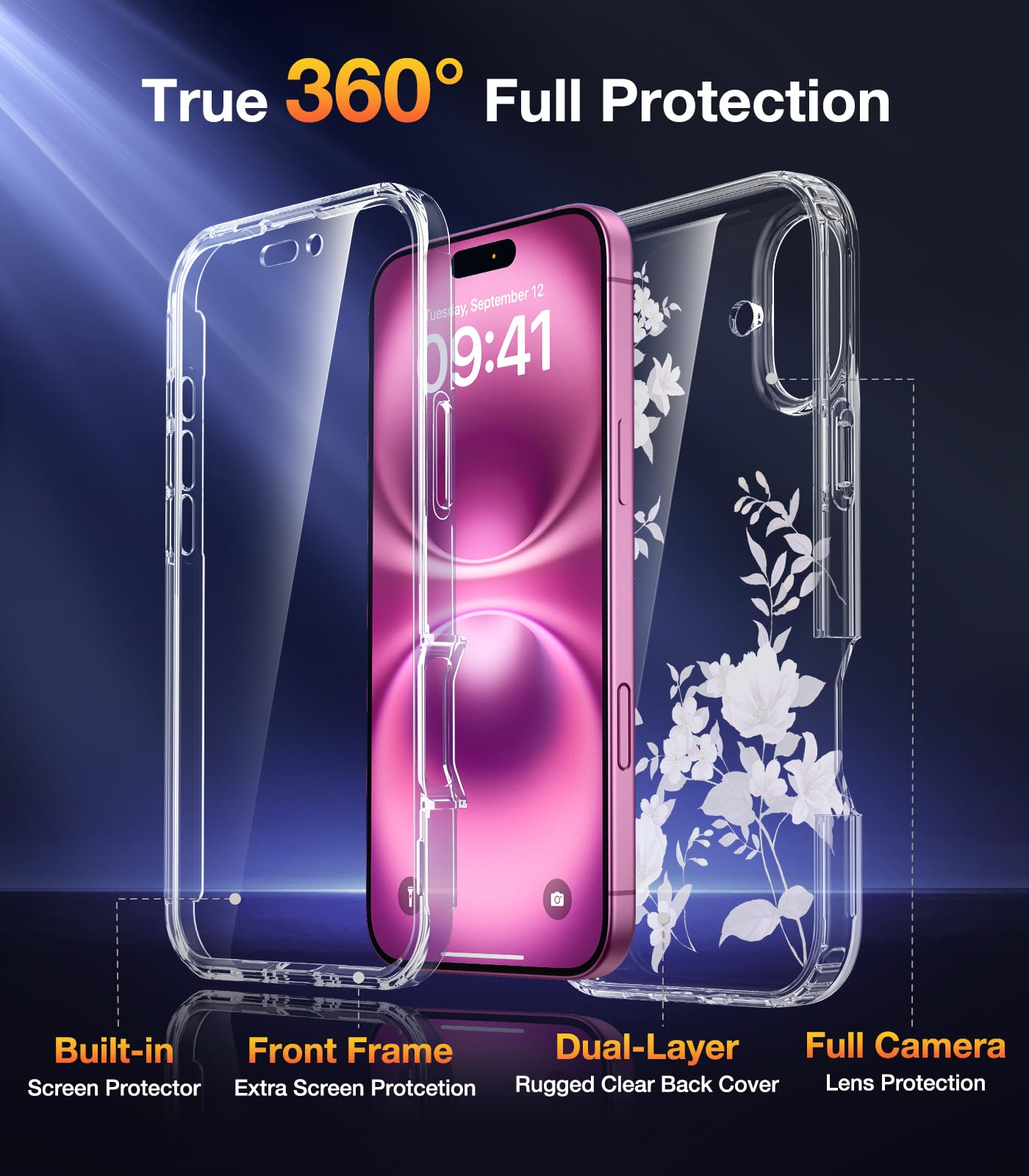 【360 Degree Full Body Rugged Protection】 Dual layer provides 360°full body rugged protection. Soft TPU shock absorption and raised 4 corners surround your phone and protect it from accidental drops and falls. With full coverage camera lens protector designed for iPhone to protect your camera and brings you the original of beauty to every photo and video.