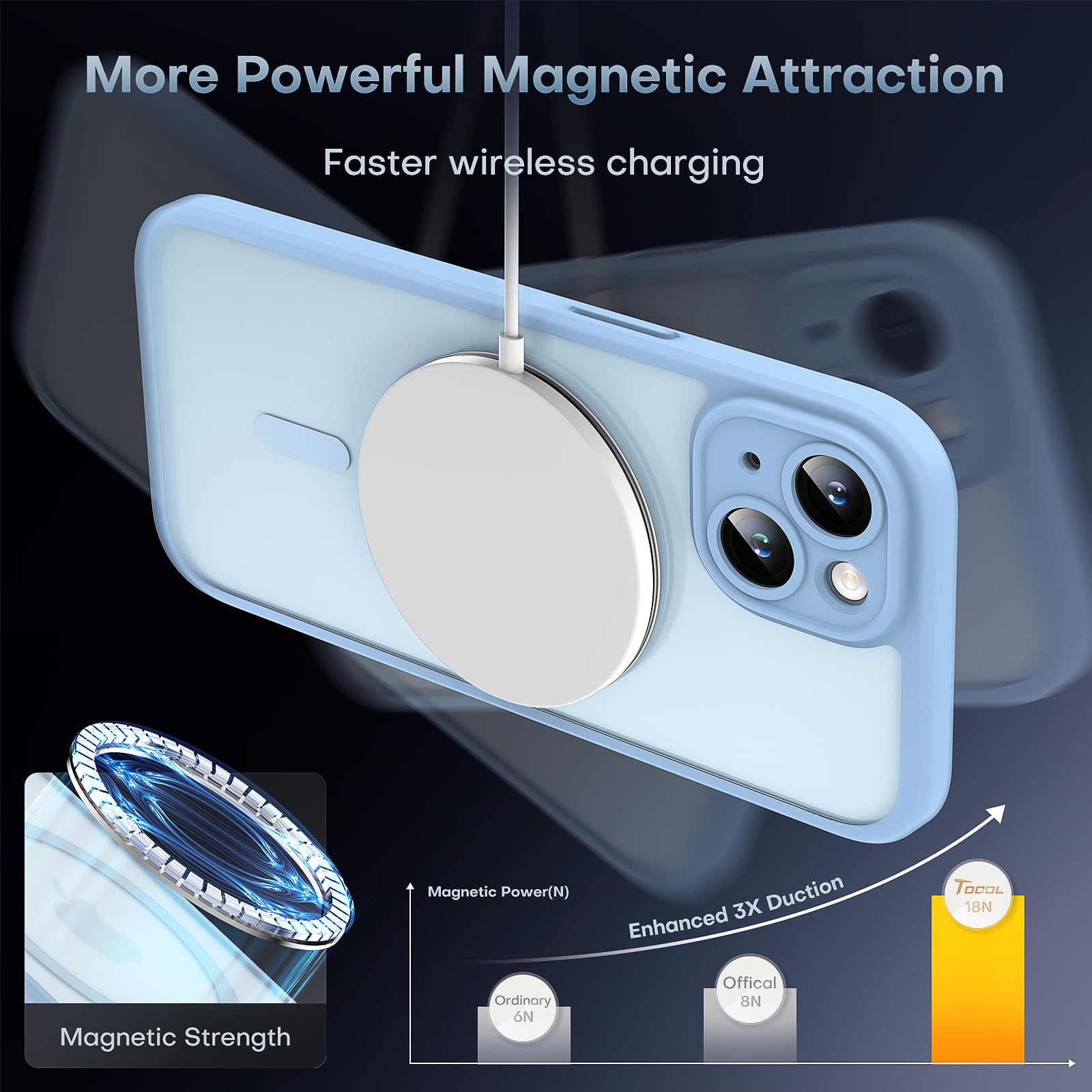 Upgraded Magnetic Charging: Upgraded for iPhone 15 Magnetic Case, better compatible with all for MagSafe chargers, providing a more stable, compatible, and faster charging experience. With 18N magnetic power (125% higher than factory standards). Only for iPhone 15 6.1 inch
