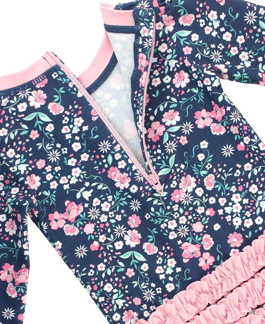 Description A wonderful addition to your little girl's swimwear, this Tropical Baby One Piece Rash Guard is comfort and style rolled into one. Unlined with snaps at bottom that make for easy changing. Made with sun protected fabric for all day protection and comfort.