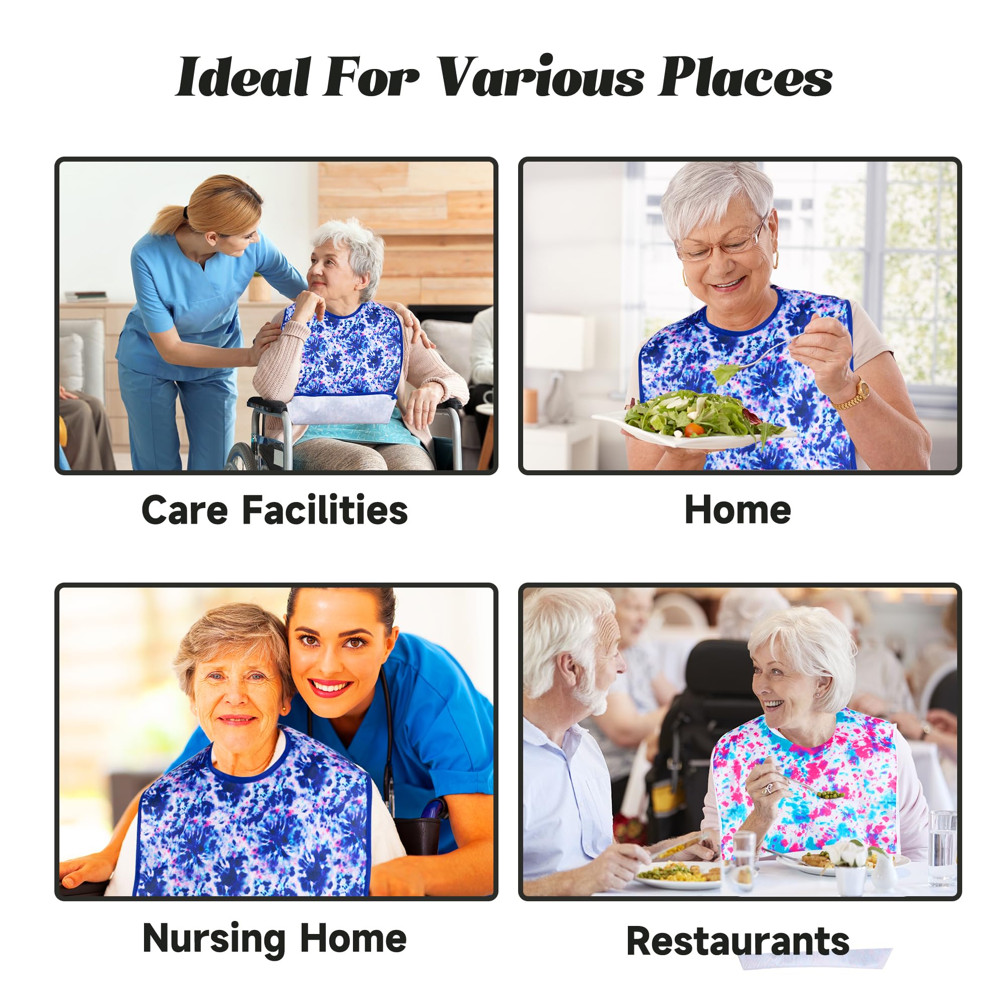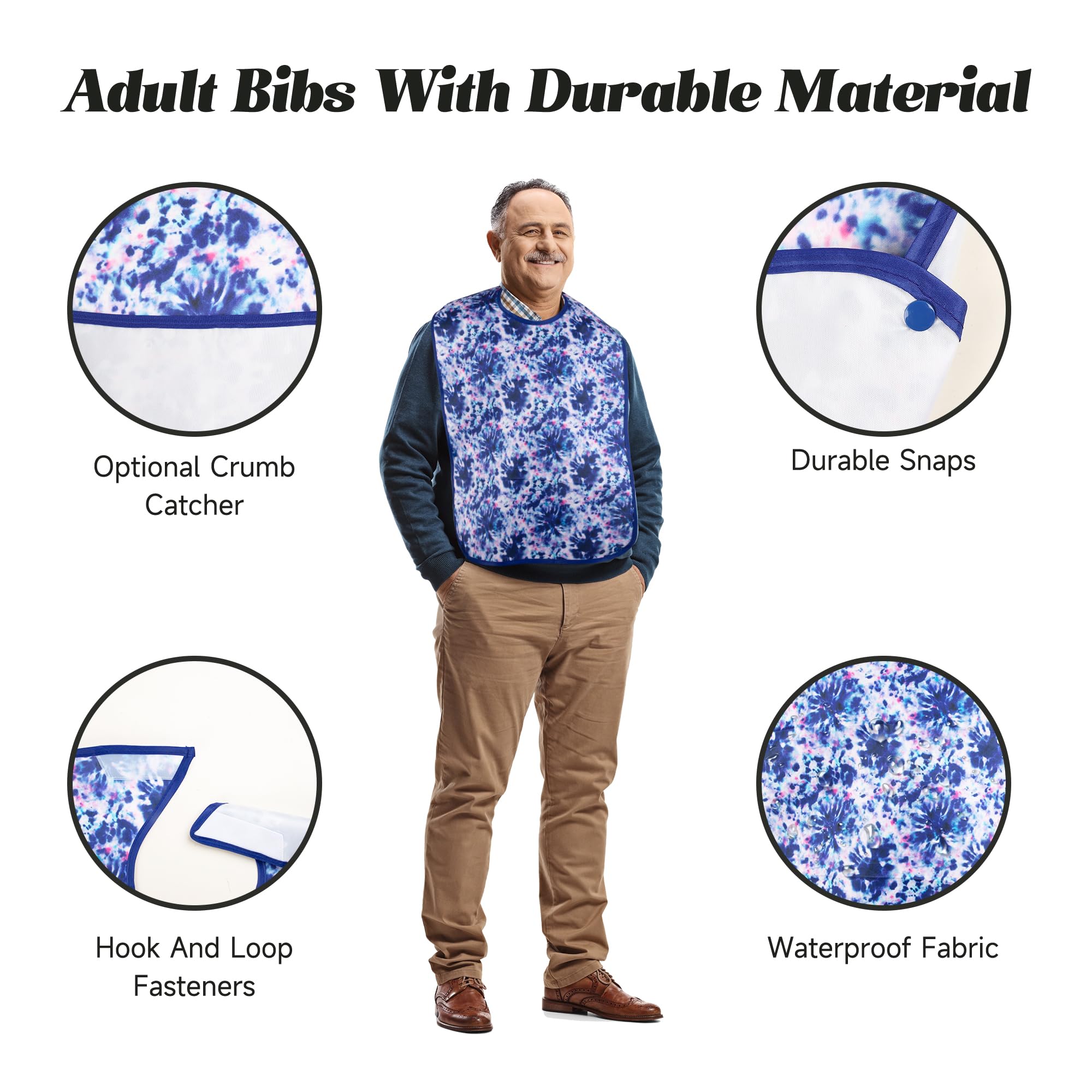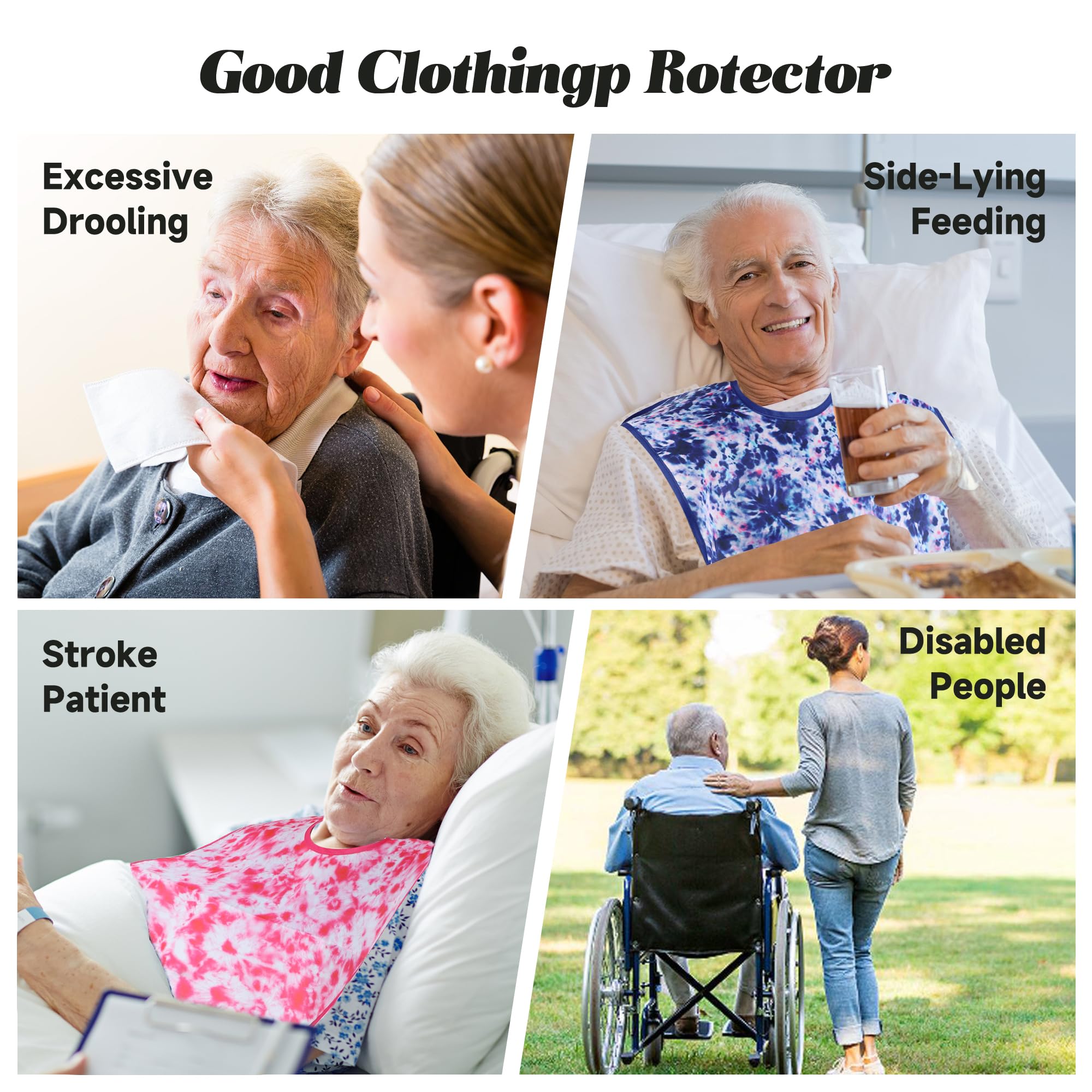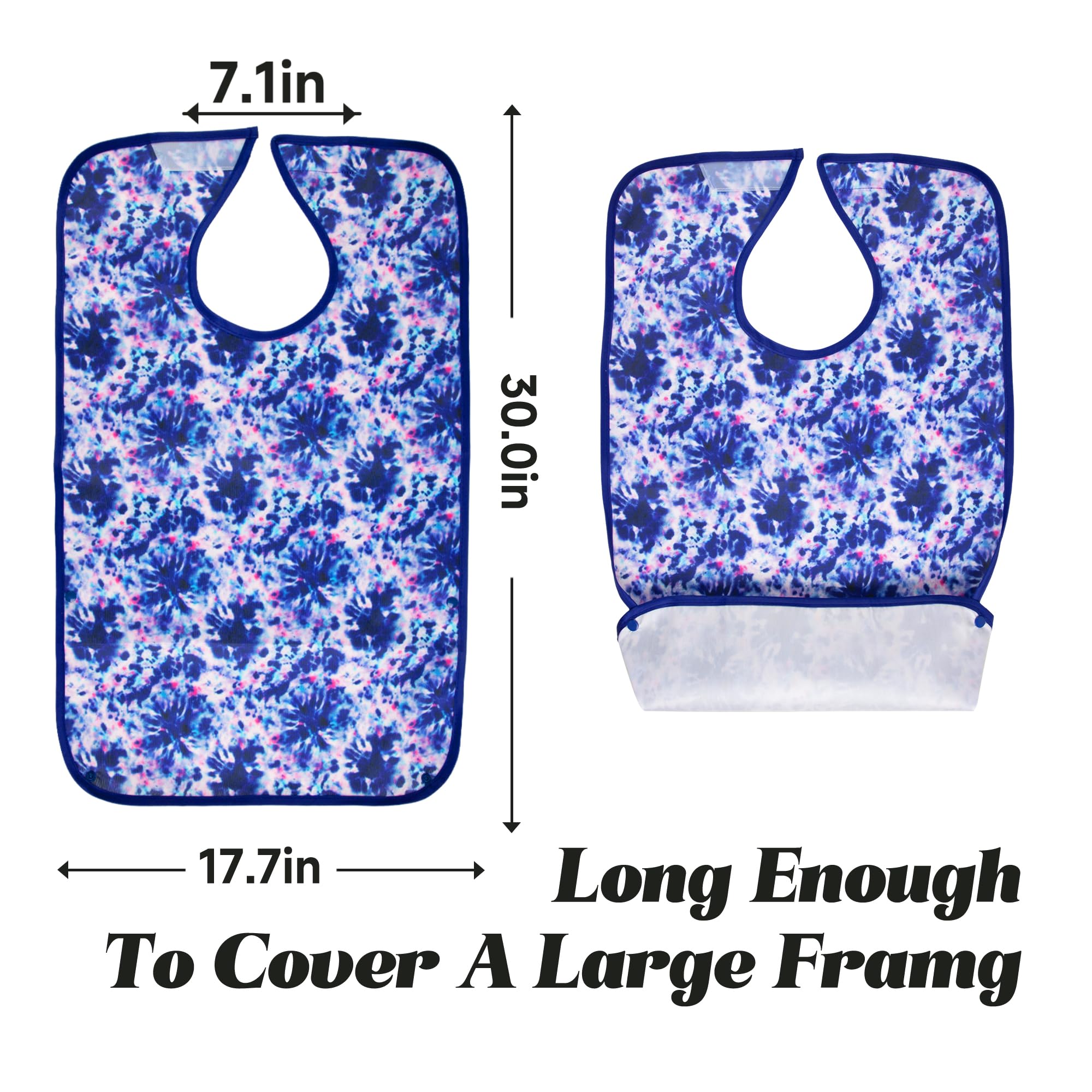 High-Quality Lining: Bibs for adults with waterproof lining isolate liquids and hot drinks to prevent burns. It catch spills and drool at mealtimes, keeping your clothes clean and dry, free of stains, while maintaining an attractive appearance
